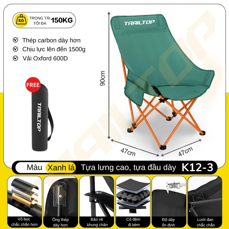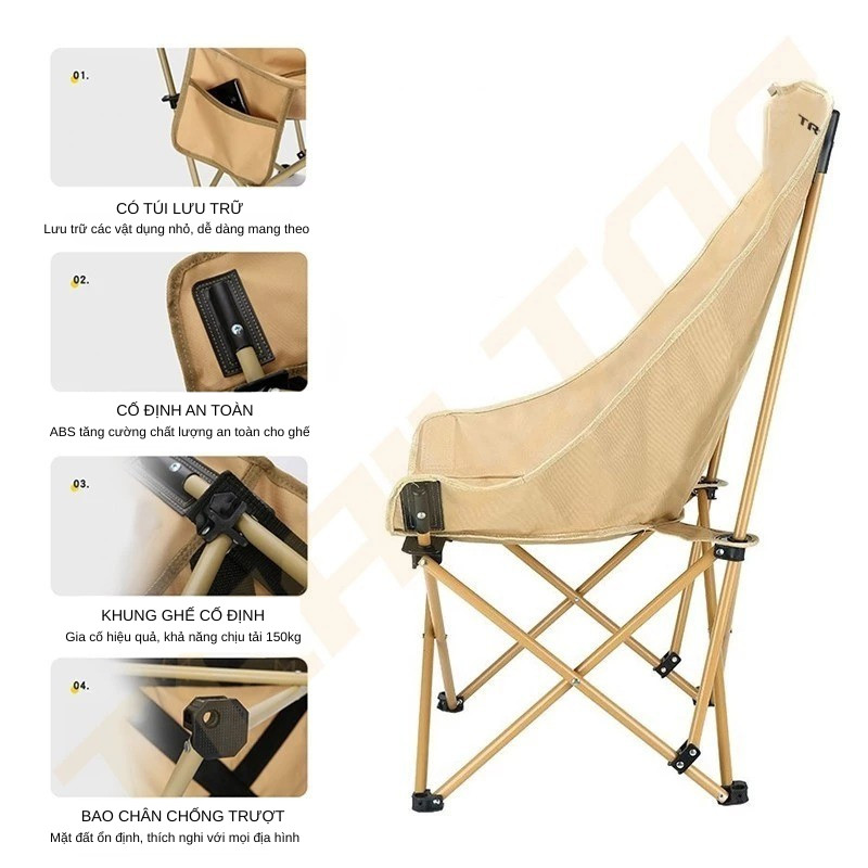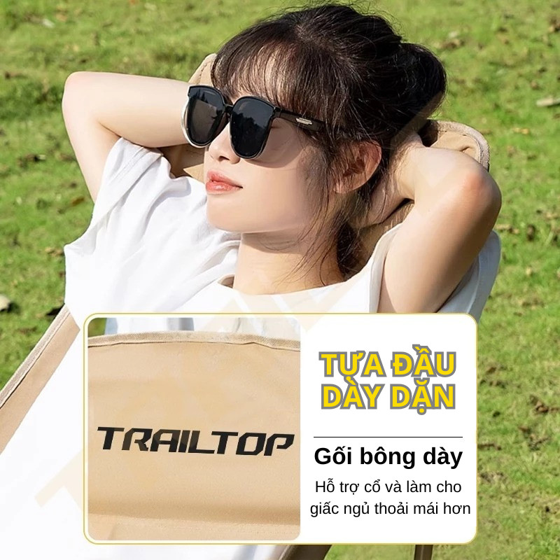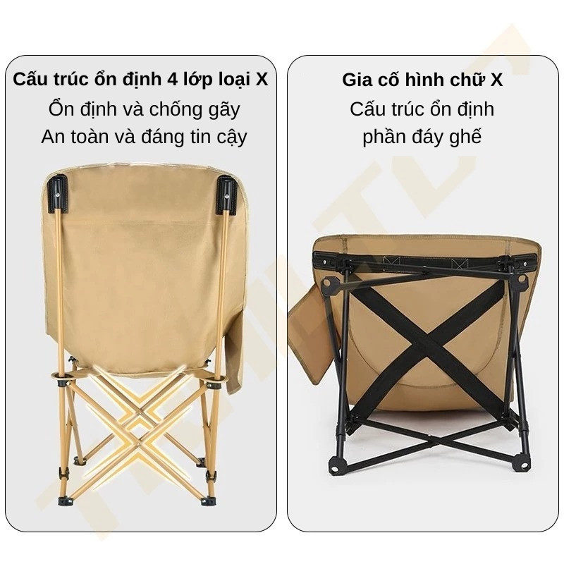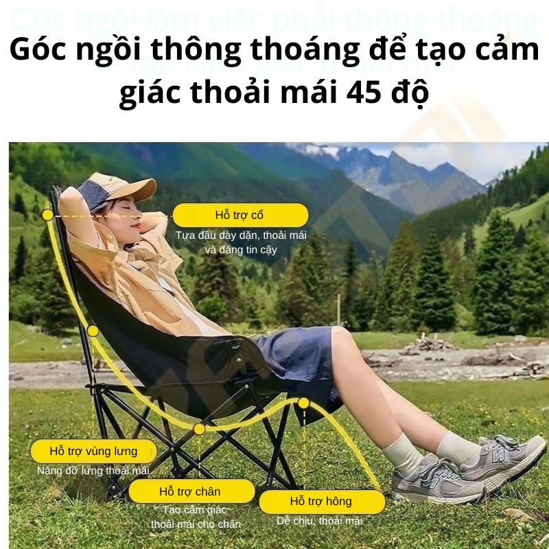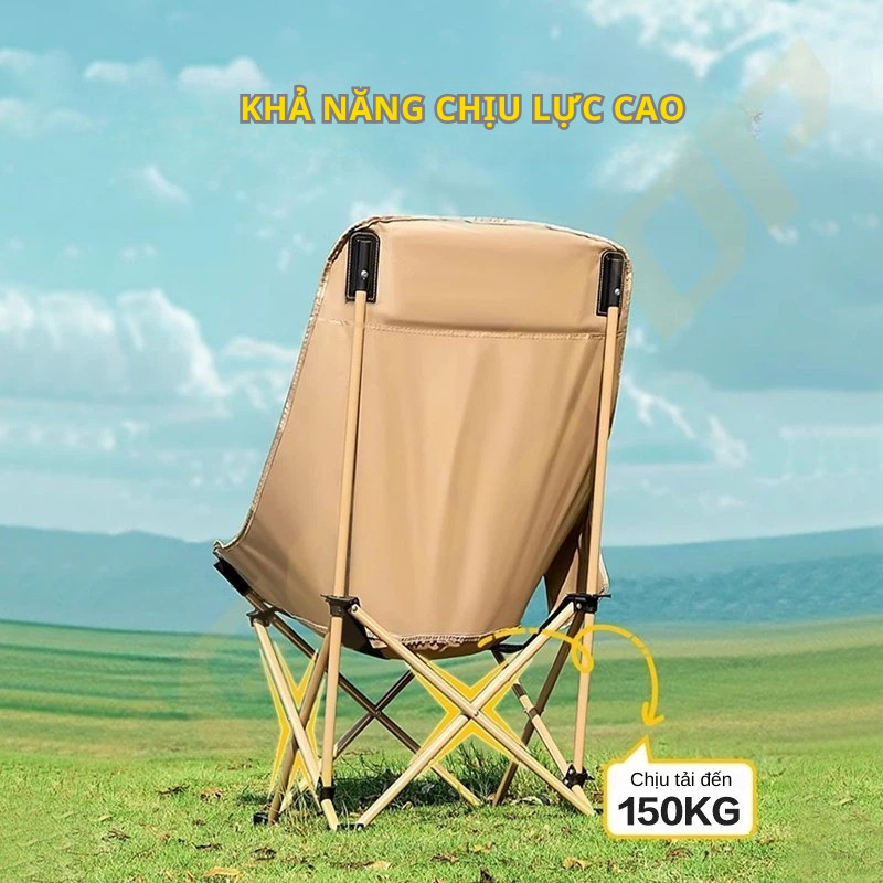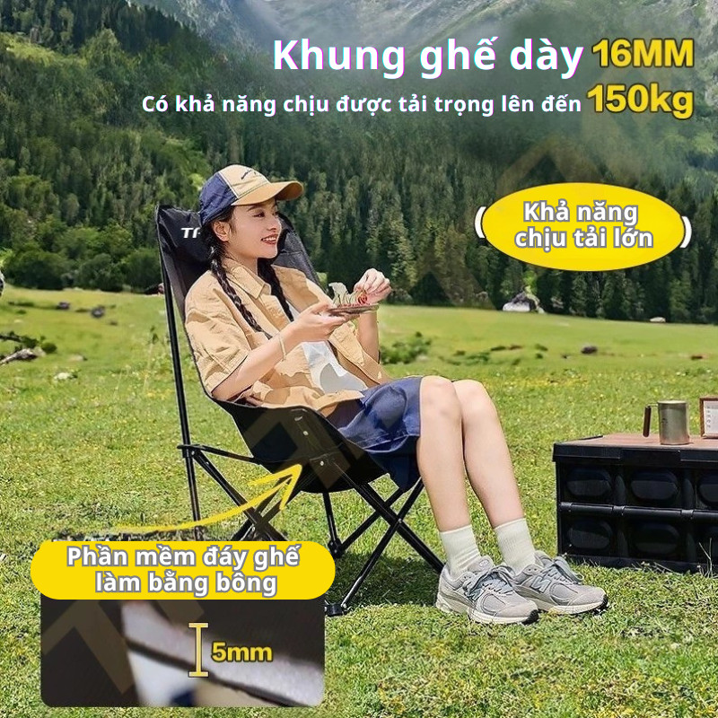 Ghế camping mặt trăng cao mút đệm đầu dựa lưng thư giãn, ghế du lịch dã ngoại gấp gọn chịu tải 150kg