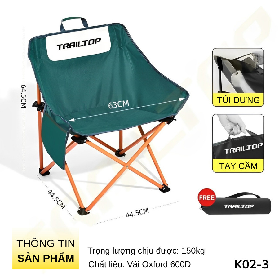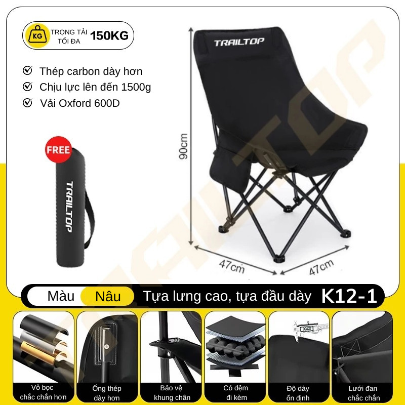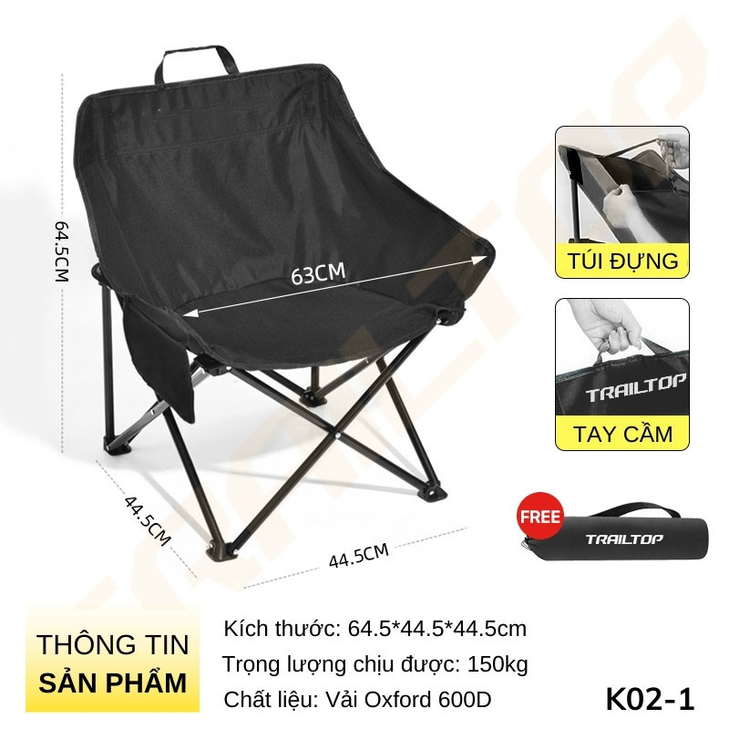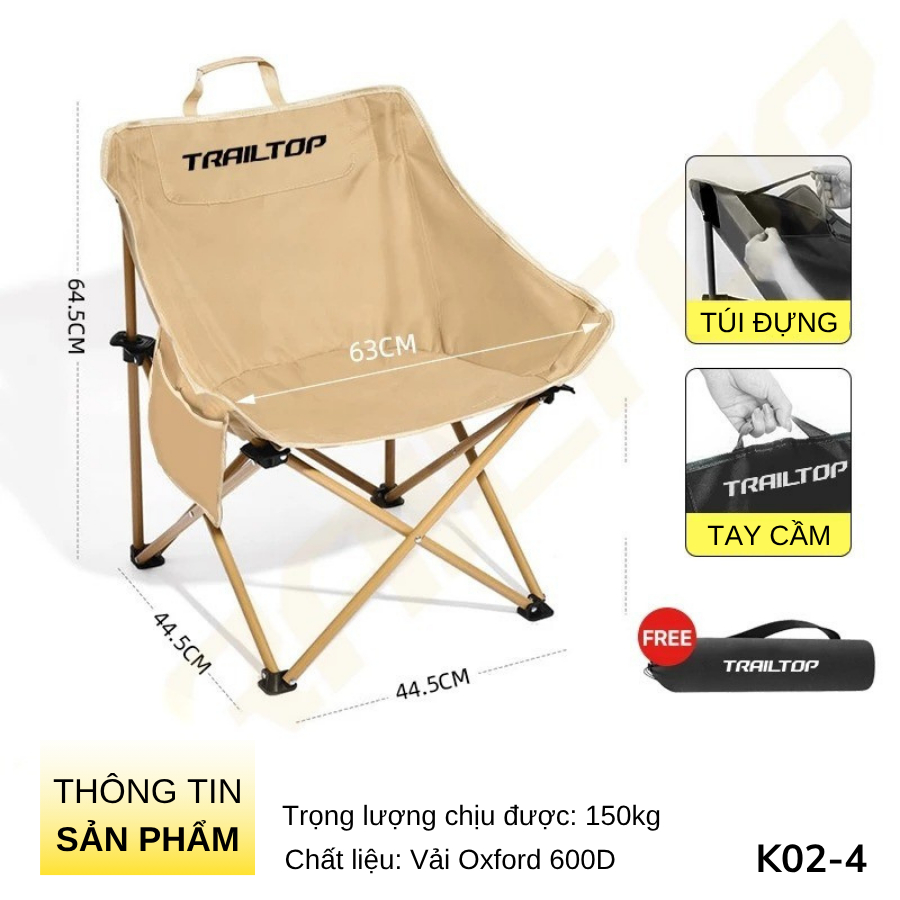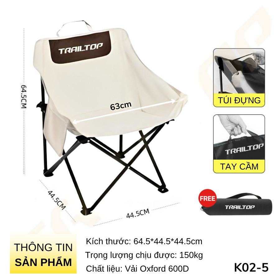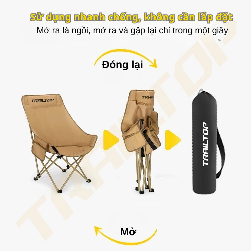 Ghế camping mặt trăng cao mút đệm đầu dựa lưng thư giãn, ghế du lịch dã ngoại gấp gọn chịu tải 150kg
