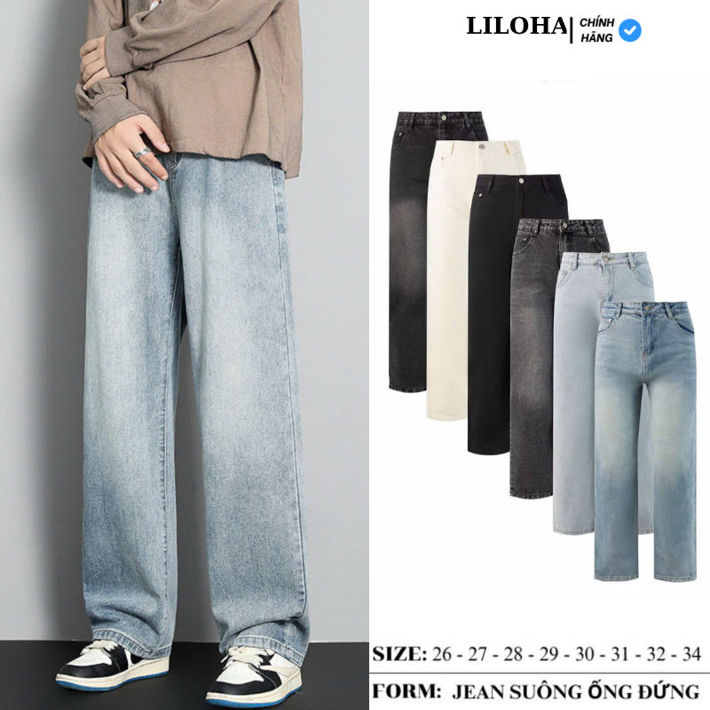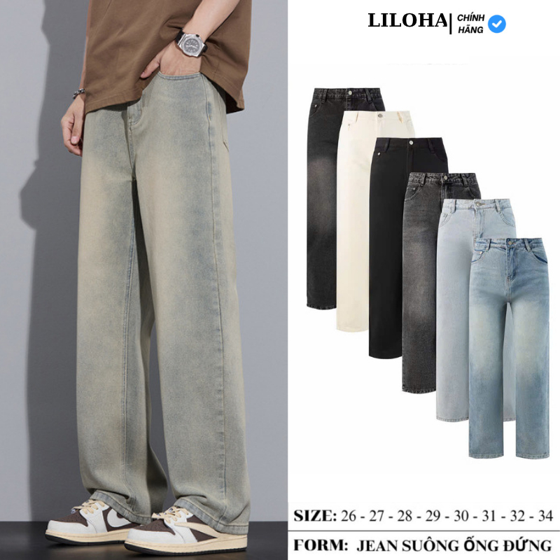 (LILOHA) Quần Jean Nam Suông Rộng Ống Đứng Màu Đen Khói – Chất Denim Dày Cao Cấp – Phong Cách Retro Basic – QX01