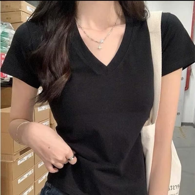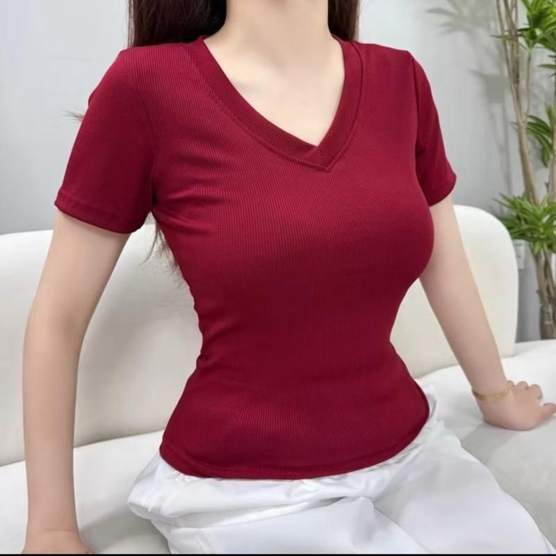 Áo Thun Nữ Trơn Cổ Tim Ngắn Tay Nhiều Màu Sắc Thời Trang A66
