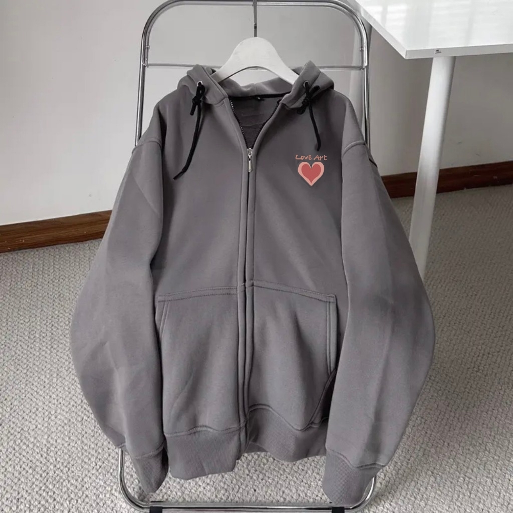 Áo khoác Nỉ Có Túi Bên Trong Chất Vải Nỉ Cotton Ấm Áp Mềm Mịn, Hình Trái Tim Love Art Nhỏ Xinh