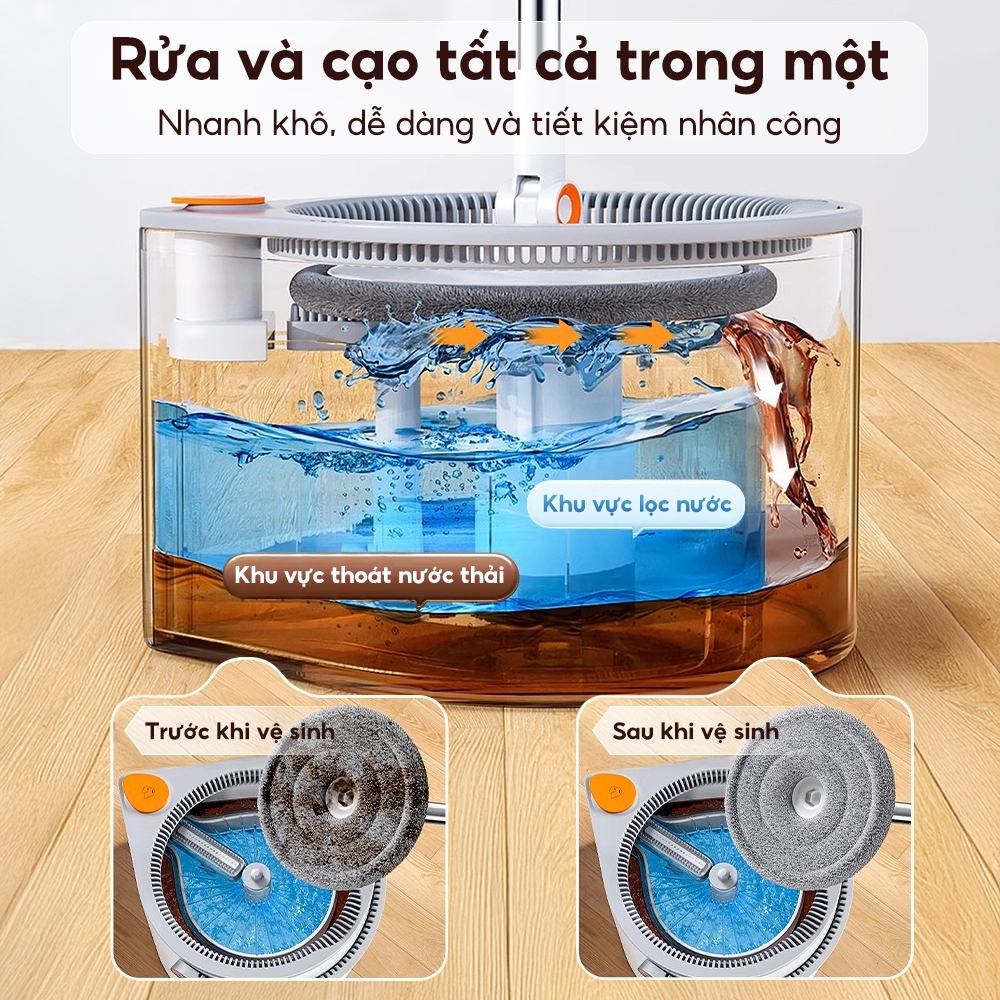 Joybos cây lau nhà tự vắt xoay Không cần rửa tay 360 độ, có chức năng tách nước bẩn cũng như làm sạch và làm khô cây lau