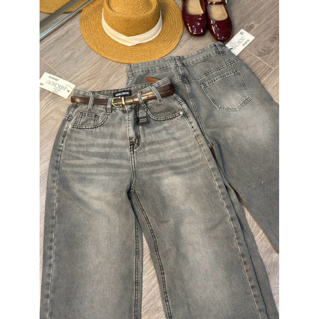 (S-2Xl ) HHCHOU Quần jeans suông trơn màu xám khói chất jeans mềm H6789