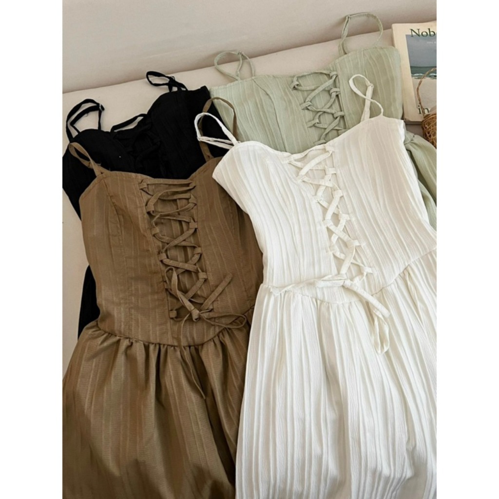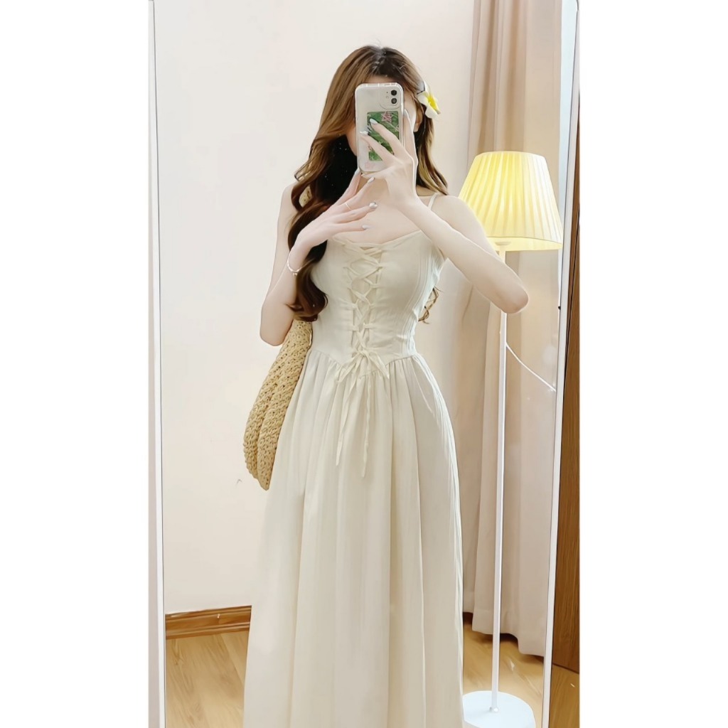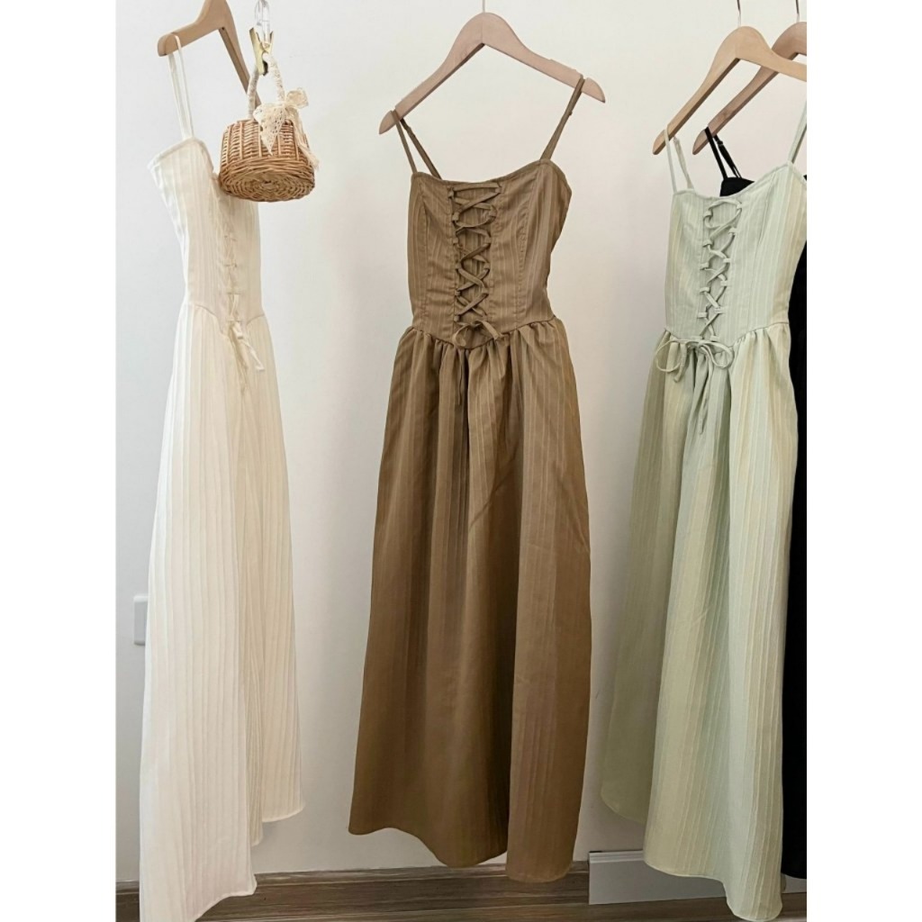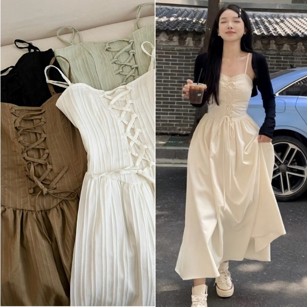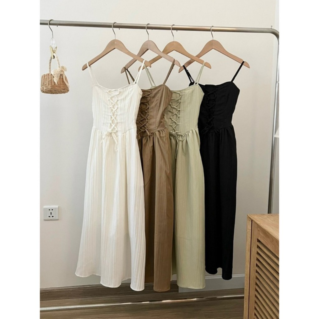 LIORA | Váy 2 Dây Lemon Dress Đan Dây Kẻ Vân Nổi Dọc Dáng Dài 2 Lớp Tiểu Thư Cá Tính Duyên Dáng LV31
