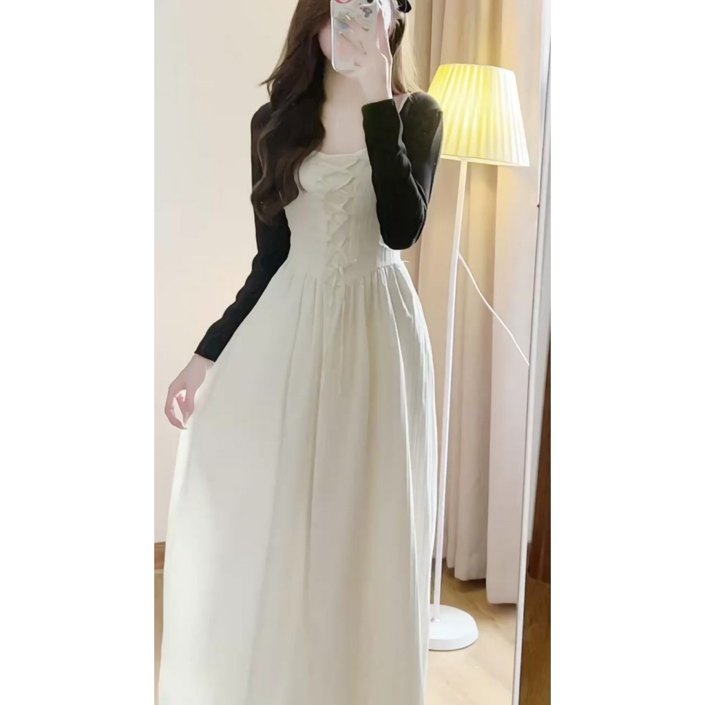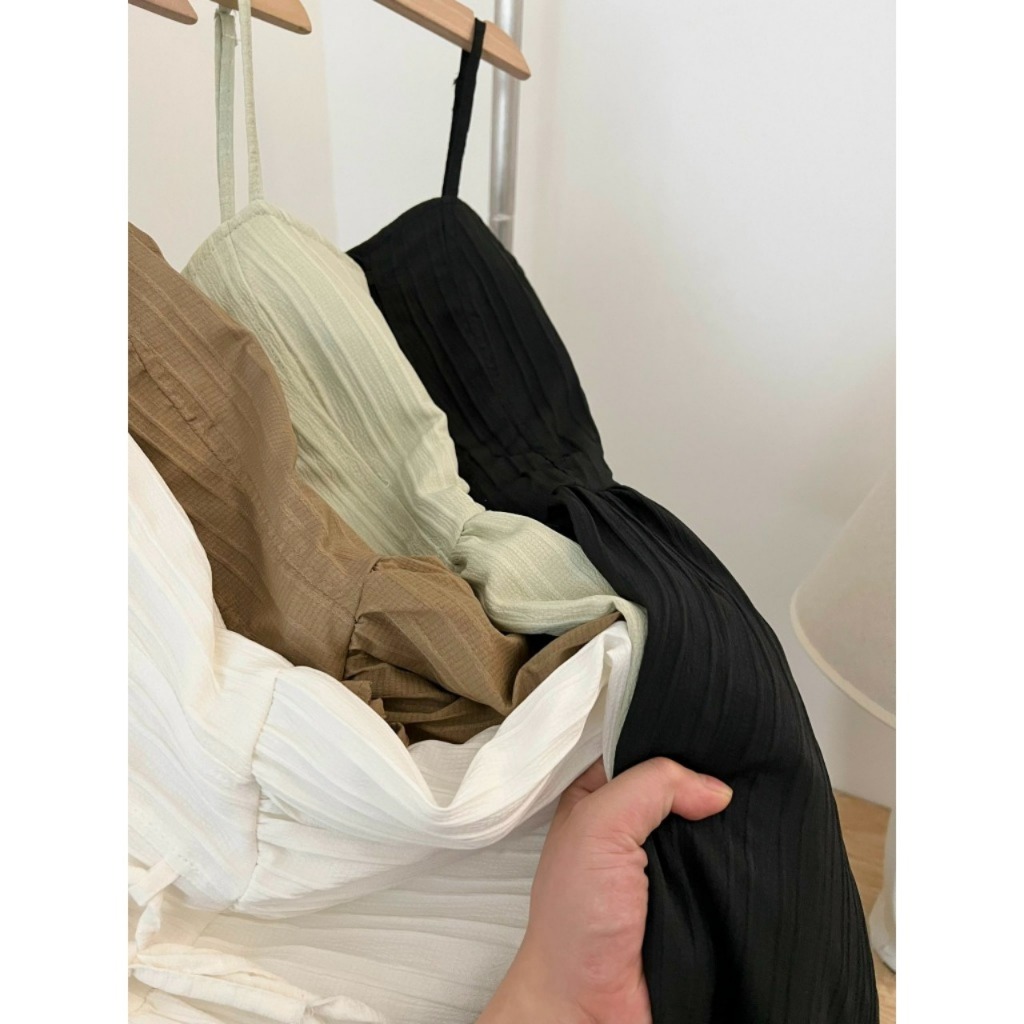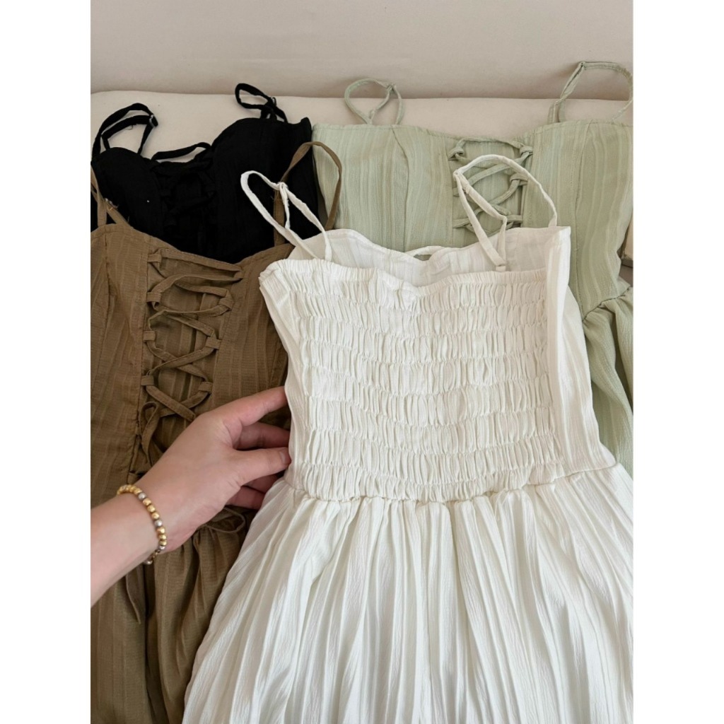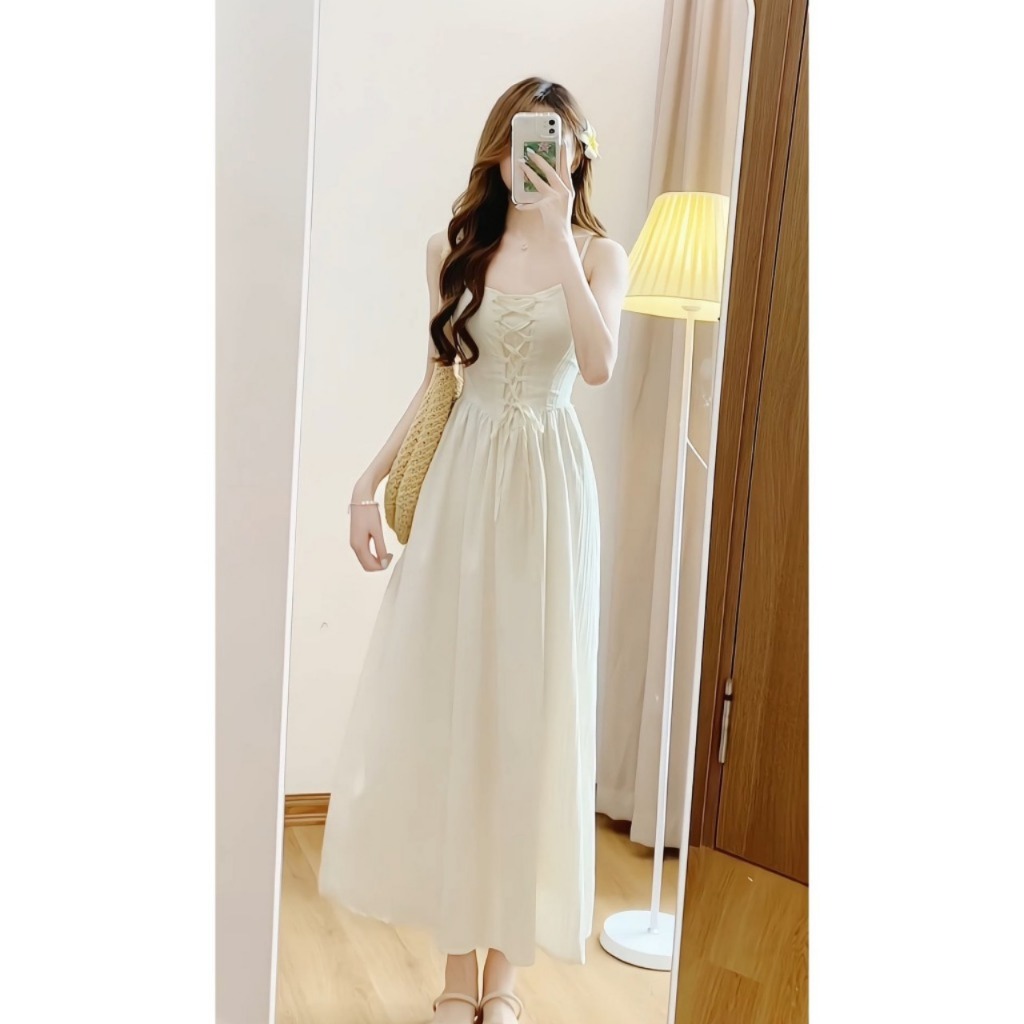 LIORA | Váy 2 Dây Lemon Dress Đan Dây Kẻ Vân Nổi Dọc Dáng Dài 2 Lớp Tiểu Thư Cá Tính Duyên Dáng LV31