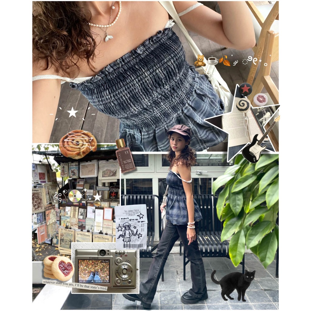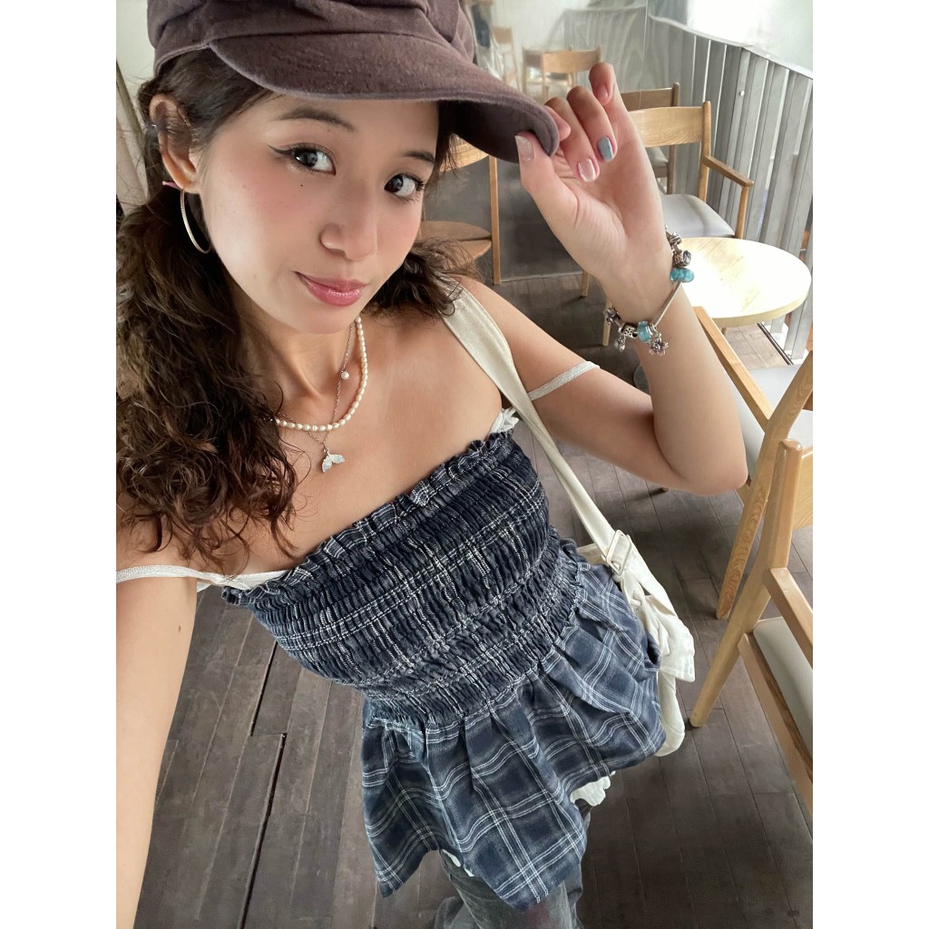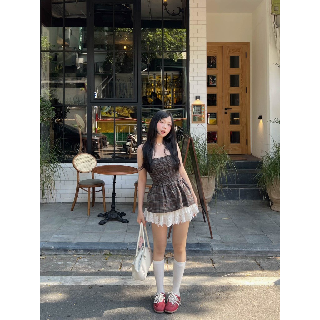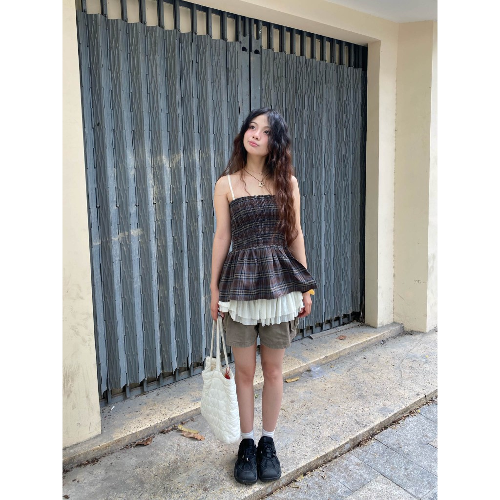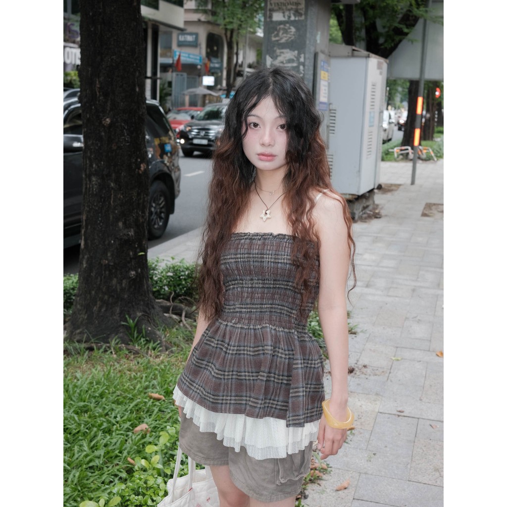 Moodie - ARORA TOP | Áo caro babydoll cúp ngực smoking cá tính
