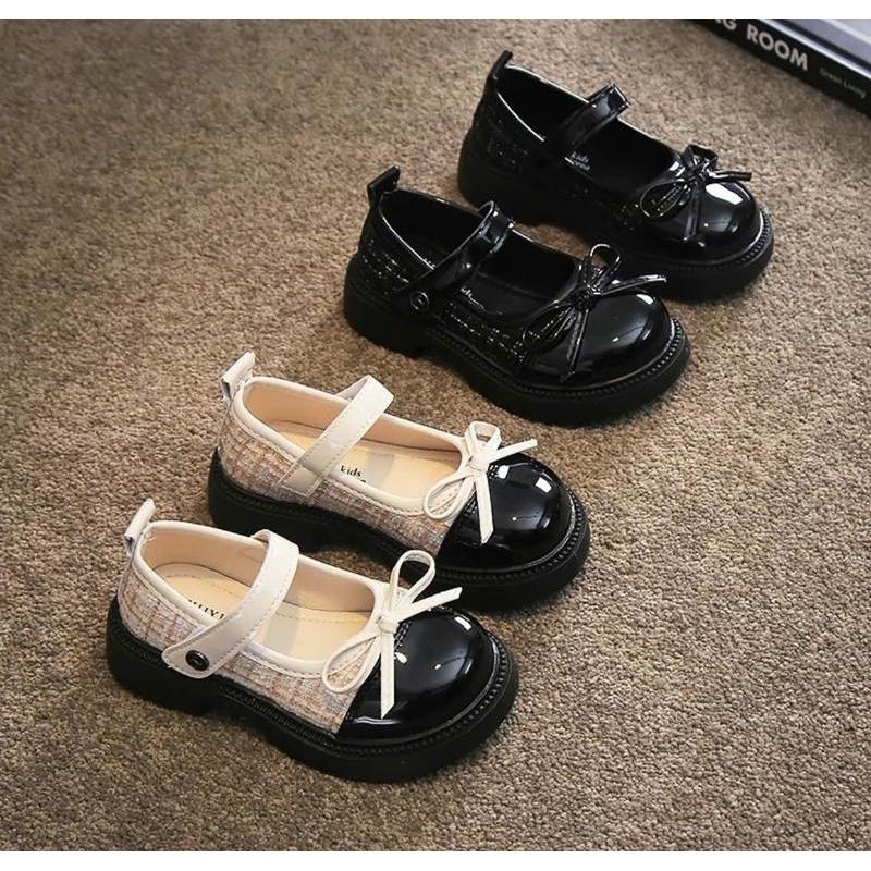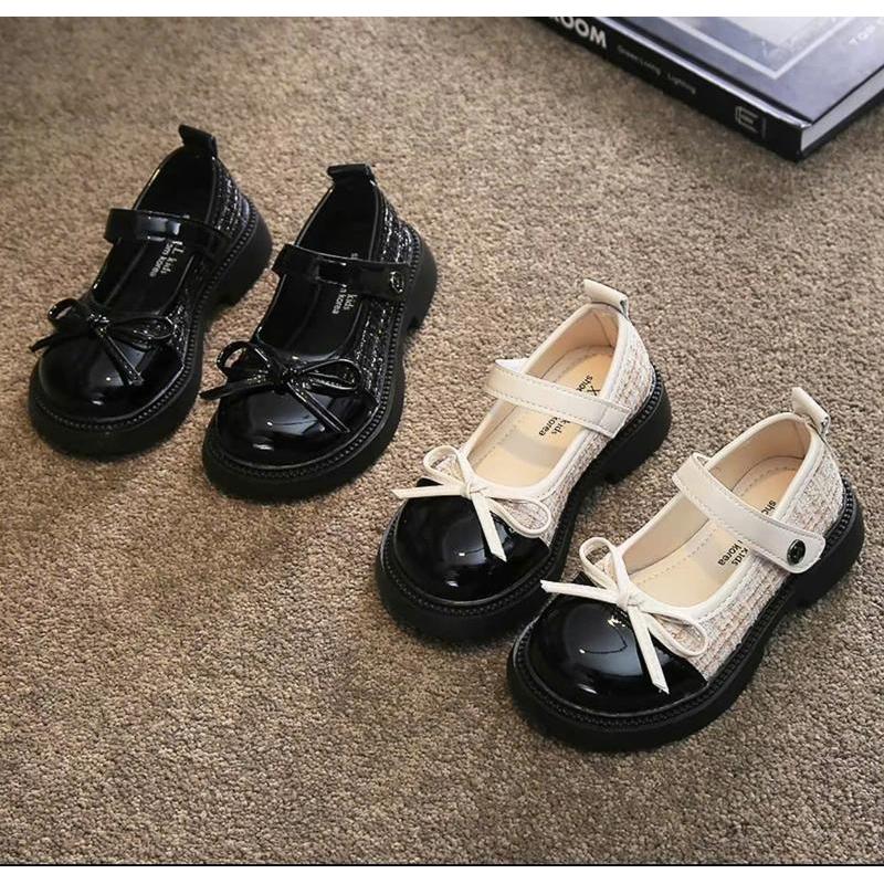 Giày búp bê phối vải dạ + hình gấu kuromi PU đế viền màu chống trơn mã Q99