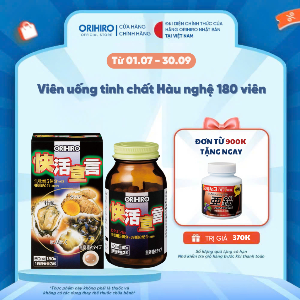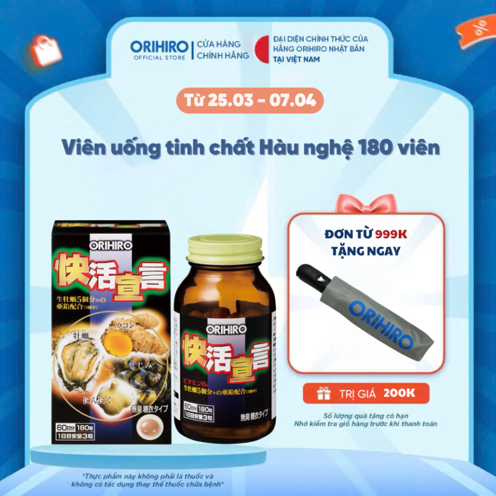 Viên uống tinh chất hàu tươi tỏi nghệ ORIHIRO Hỗ trợ sức khoẻ 180 viên