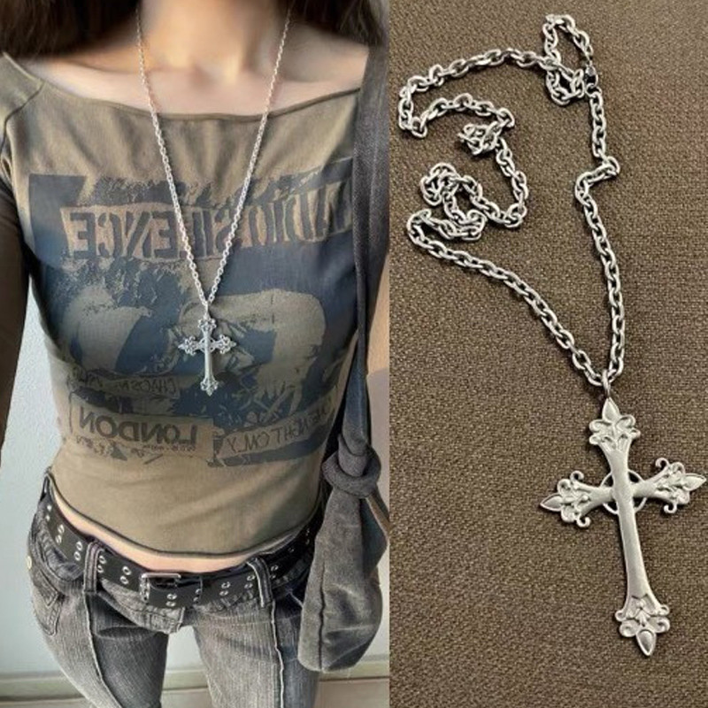 🧚🏻♀️Ganten🧚🏻♀️Vòng cổ chữ thập Bạc cá tính Vòng cổ khắc chữ thập Quà tặng cho nam và nữ