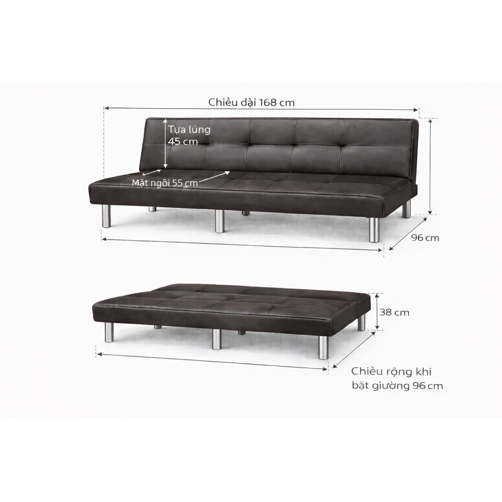 Sofa Bed MINOTA | Sofa Giường Đa Năng 168x96cm | 6 Chân Vững Chắc | Không Lò Xo | Chống Xẹp Lún | Free Ship