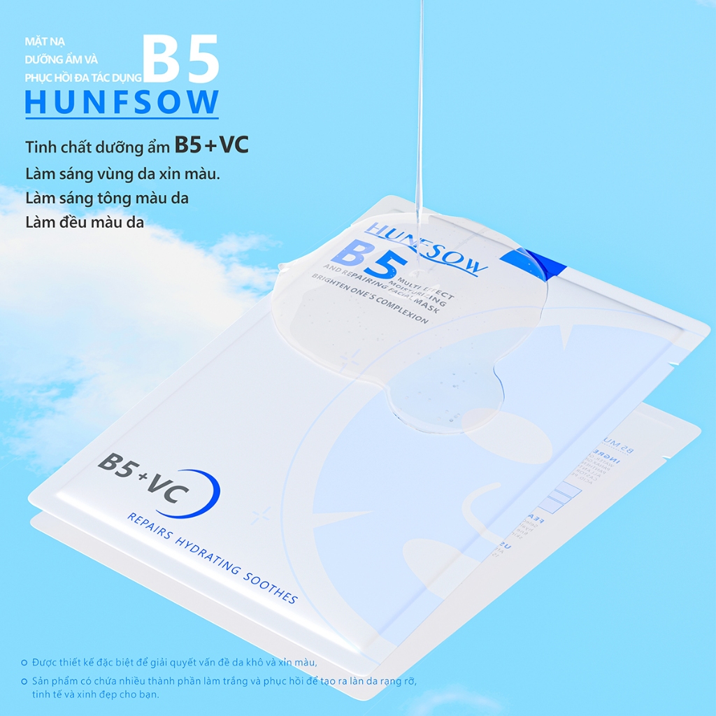 Mặt Nạ HUNFSOW dưỡng ẩm /phục hồi da Vitamin C & B5 Làm sáng da/ Hộp 5 Miếng