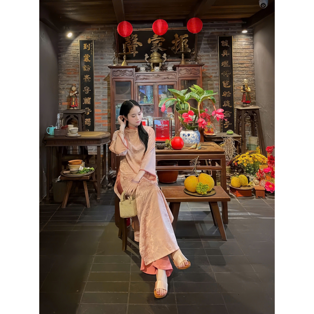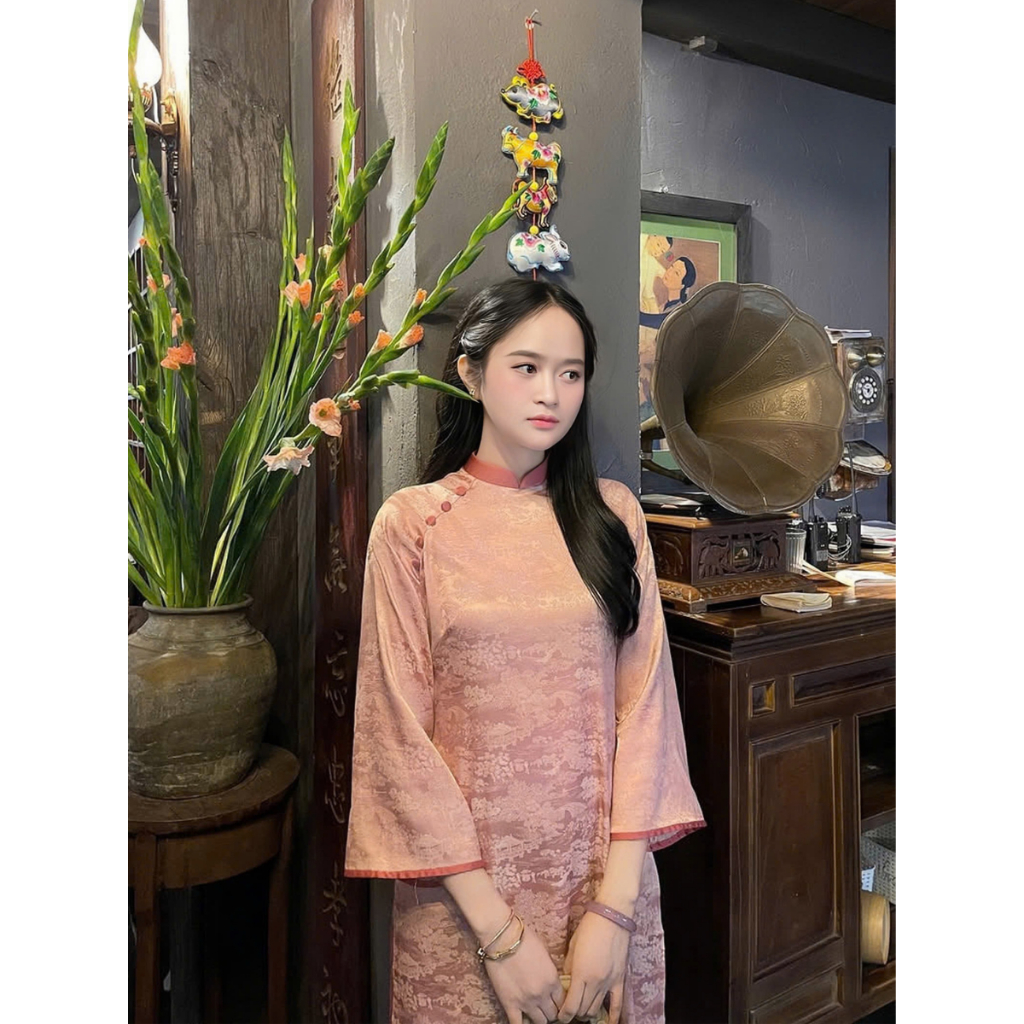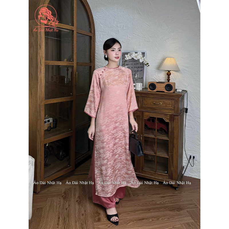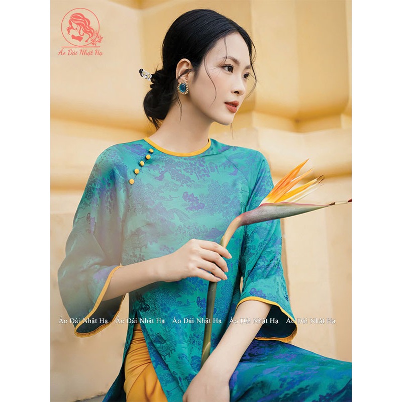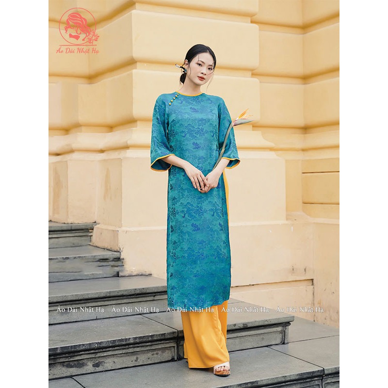 Áo Dài Cách Tân Lụa Gấm Hoa Viên Dáng Suông Đính Cúc Nổi Bật Nhẹ Nhàng, Duyên Dáng - Áo Dài Nhật Hạ
