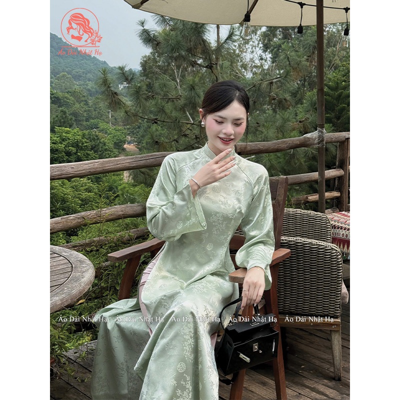 Áo dài gấm truyền thống Trúc Anh chất liệu lụa gấm trúc đào cao cấp, mềm mại, ôm eo tay loe sang trọng - Áo dài Nhật Hạ