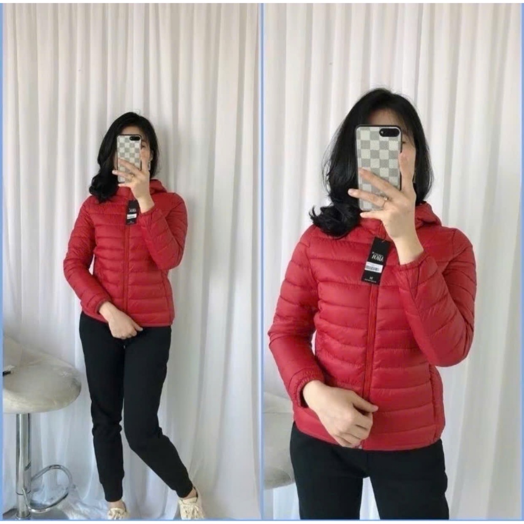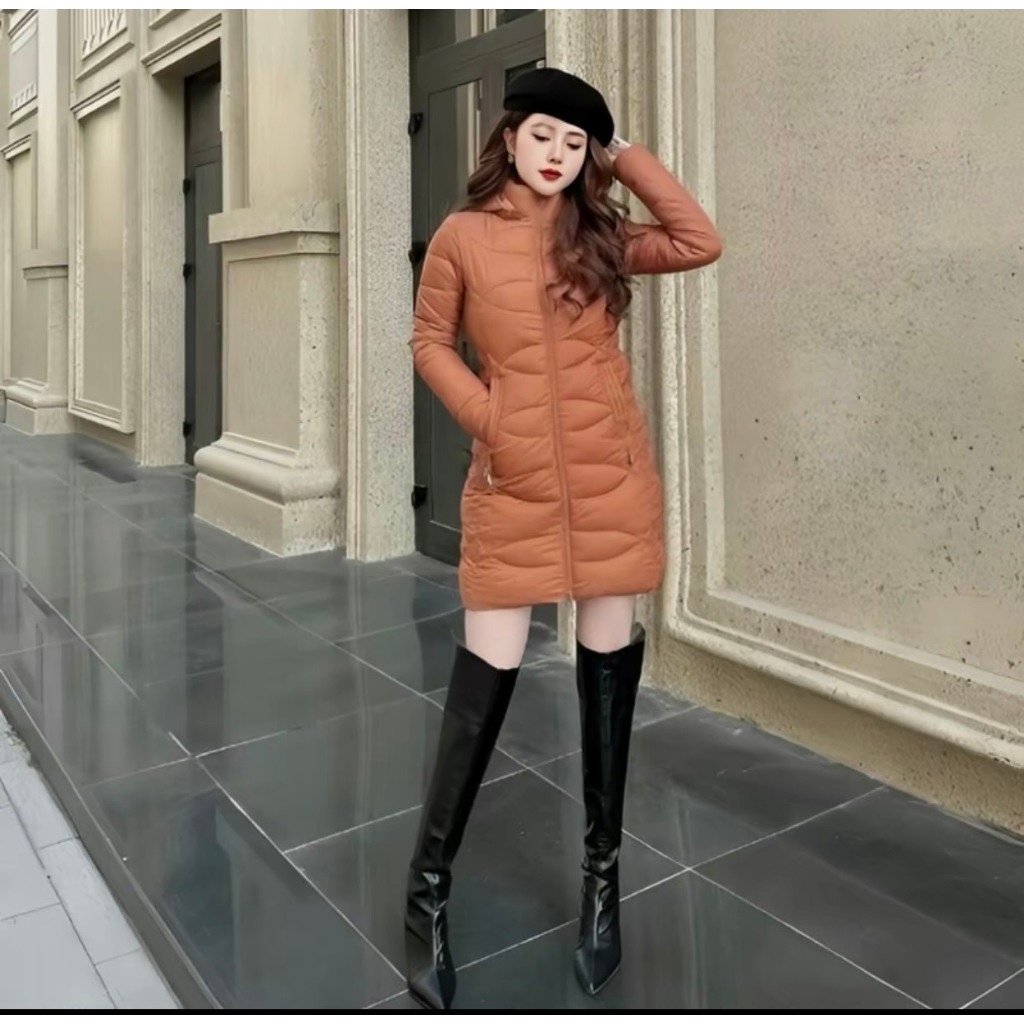 Áo phao siêu nhẹ dành cho nữ có mũ tháo rời 3 lớp dày ấm áp - Áo phao trần bông siêu nhẹ 08