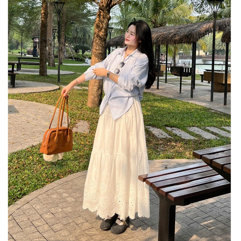 [ẢNH RETROSTYLE] Chân Váy Ren Thô Boil Dáng Dài QC Có Lót Trong Phong Cách Retrostyle Back To School CVren339