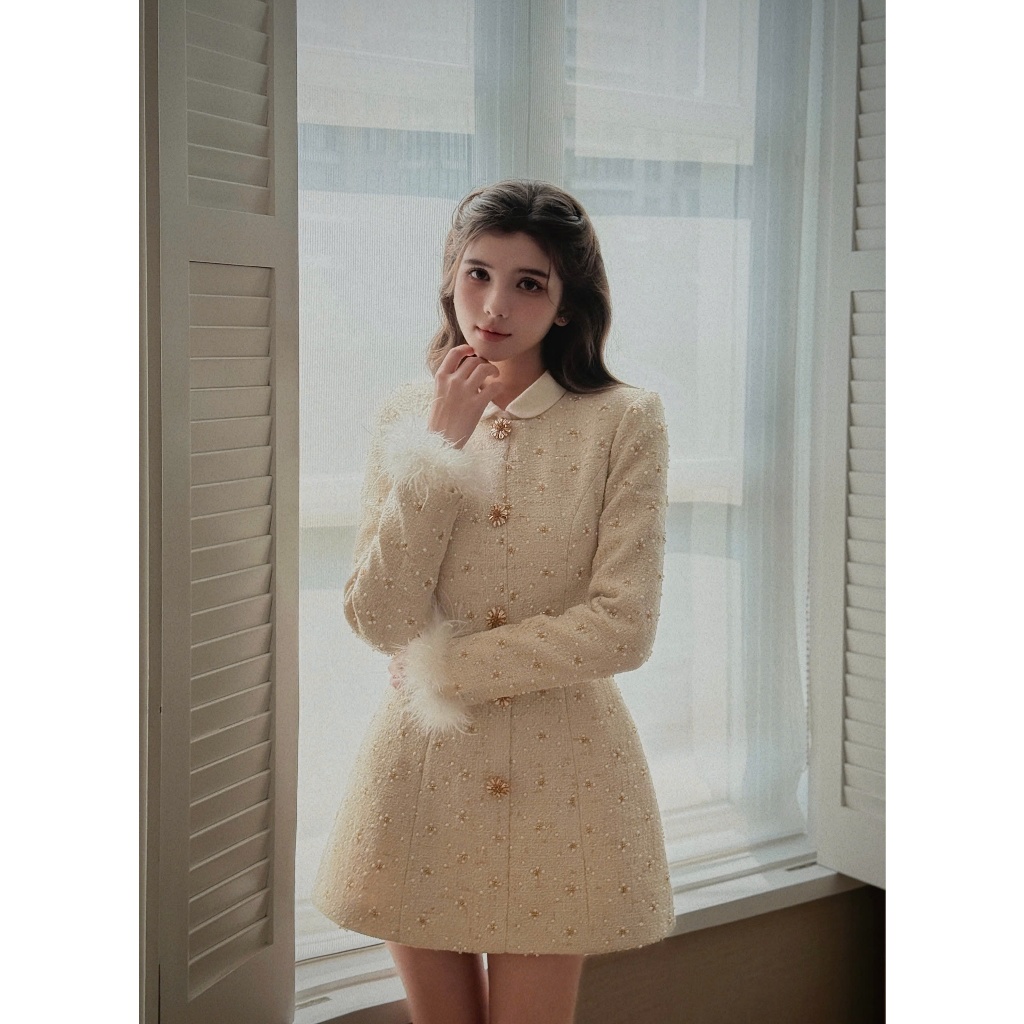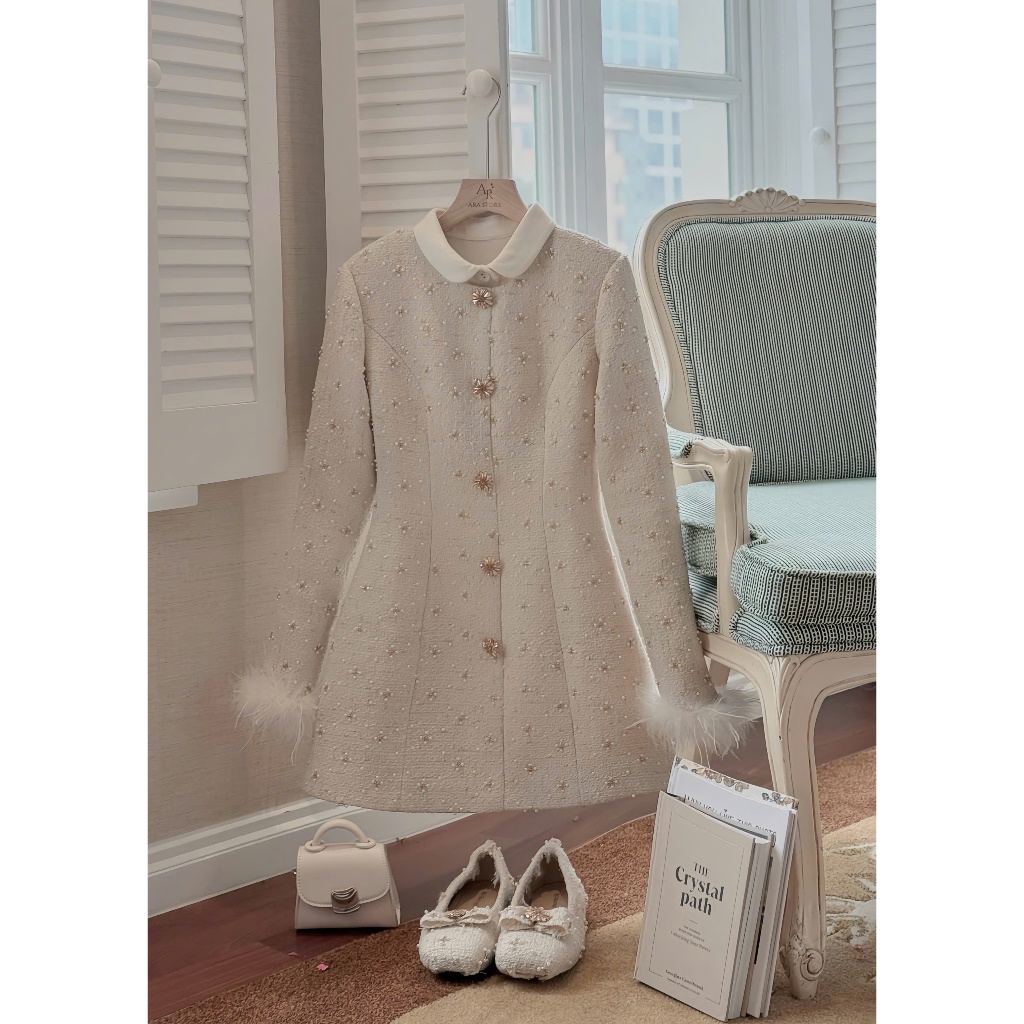 Ara - Váy thiết kế dạ Tweed đính hạt cổ tròn Myan Dress V91