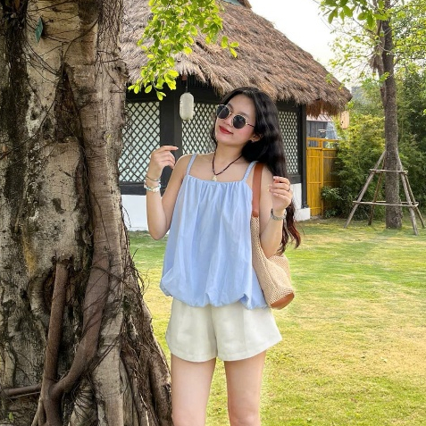 Áo 2 dây bí chất gió bo chun gấu mặc đi biển đi chơi Joolate 328 P13k22
