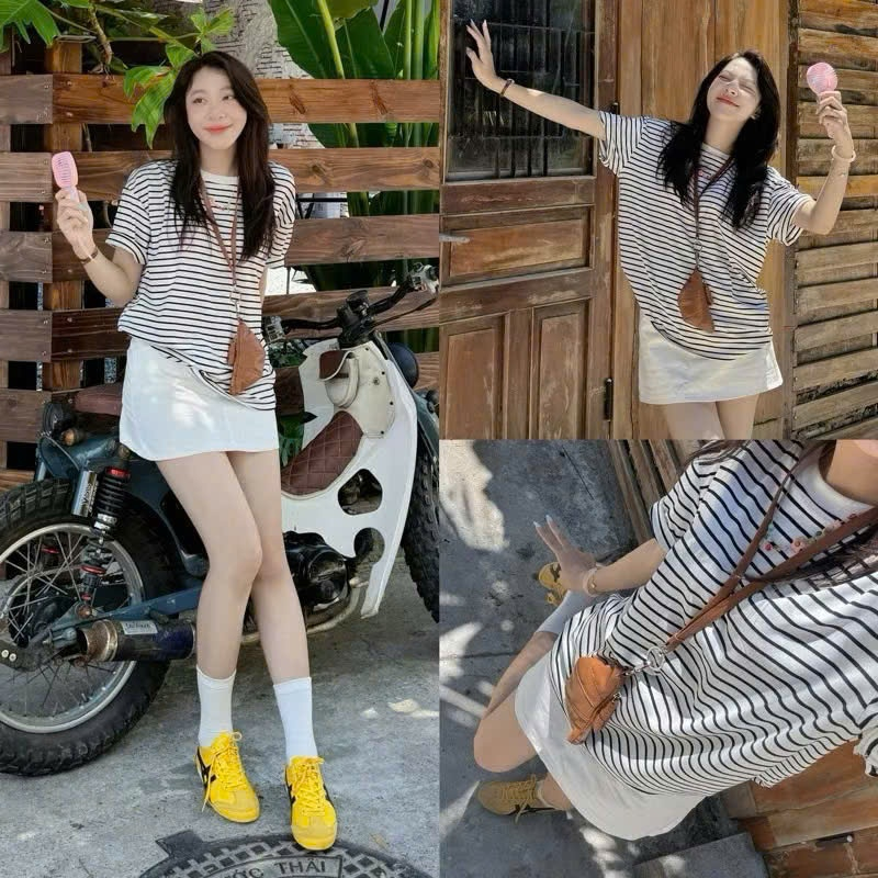 Áo phông babytee kẻ ngang phom rộng chất cotton Joolate 418_P10K14