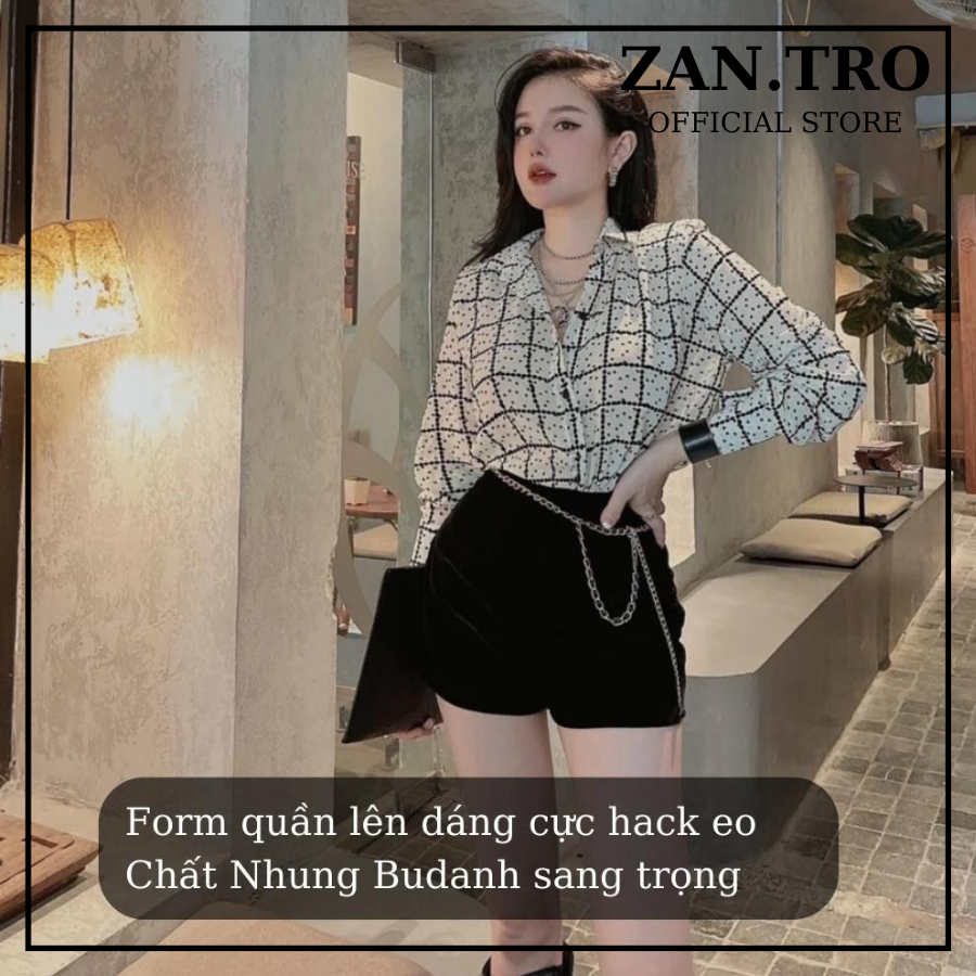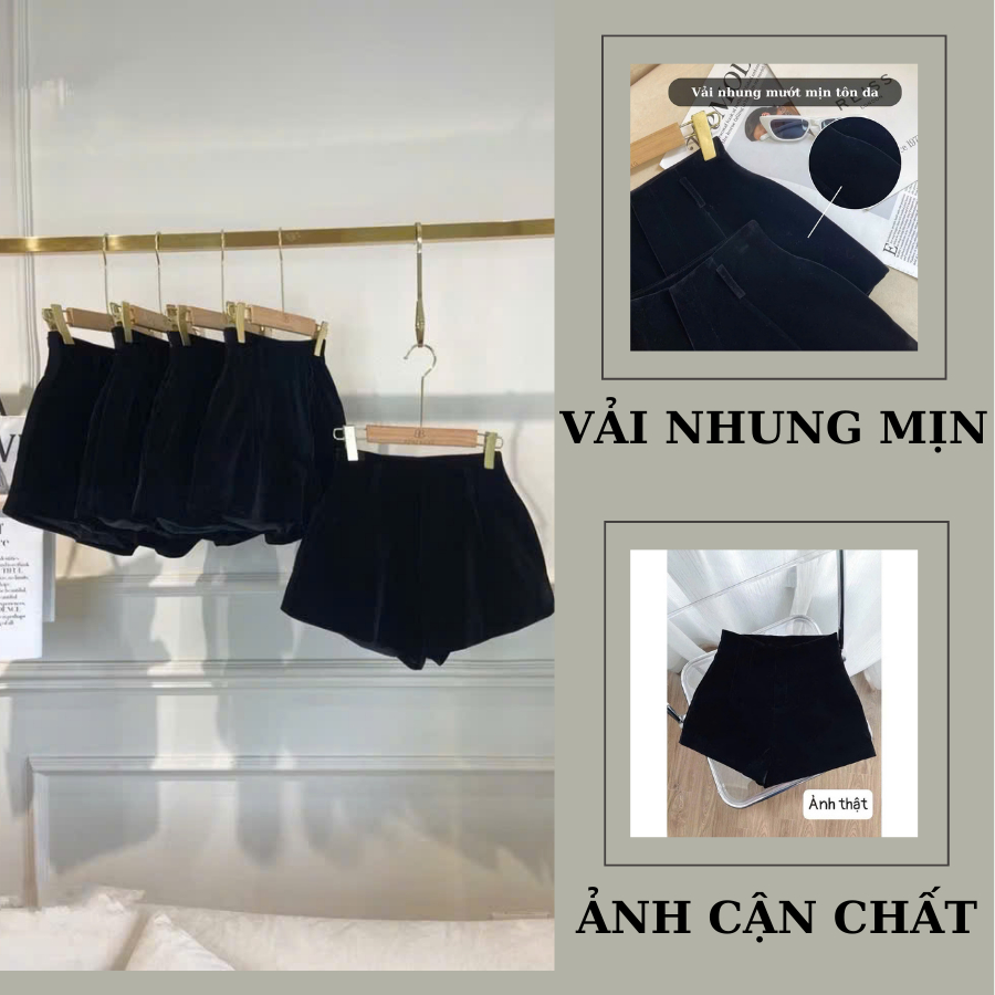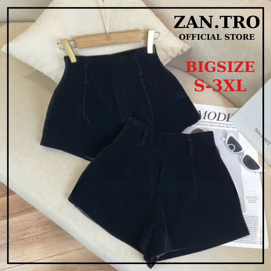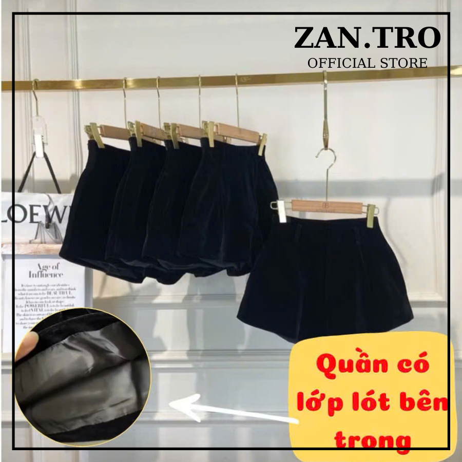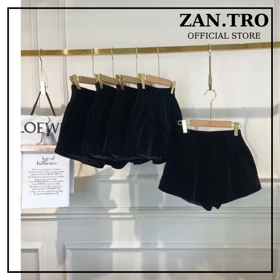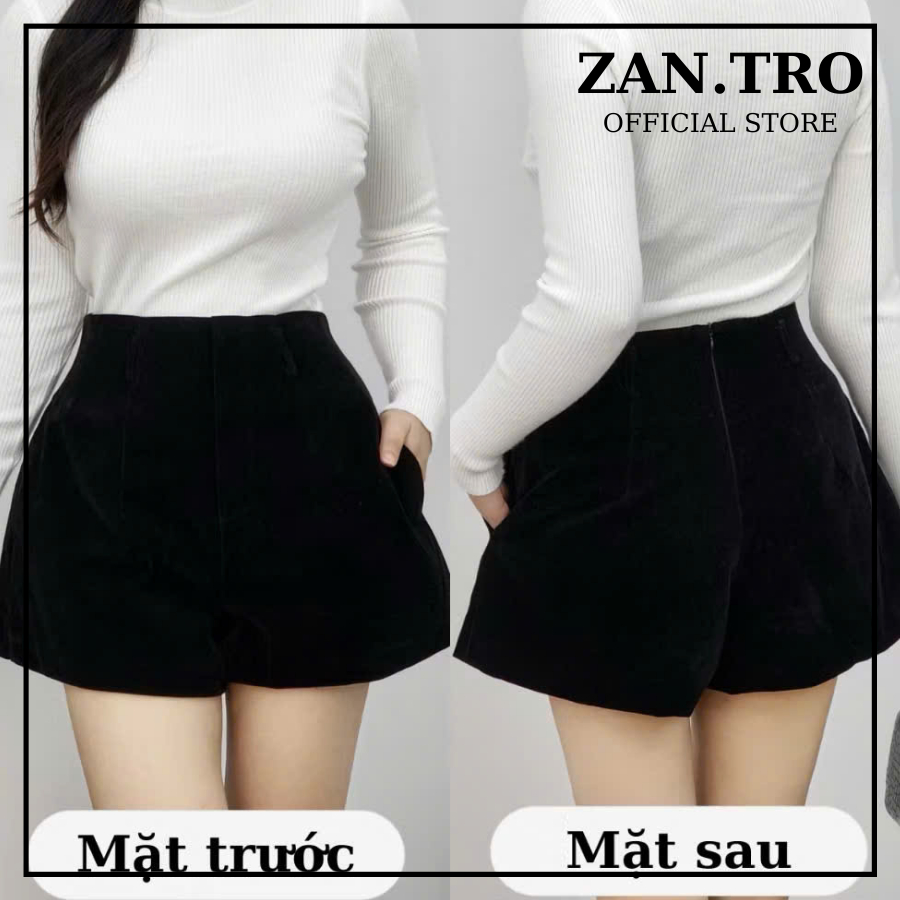 Quần short nhung cạp cao ZANTRO quần đùi ống rộng khóa sau 465