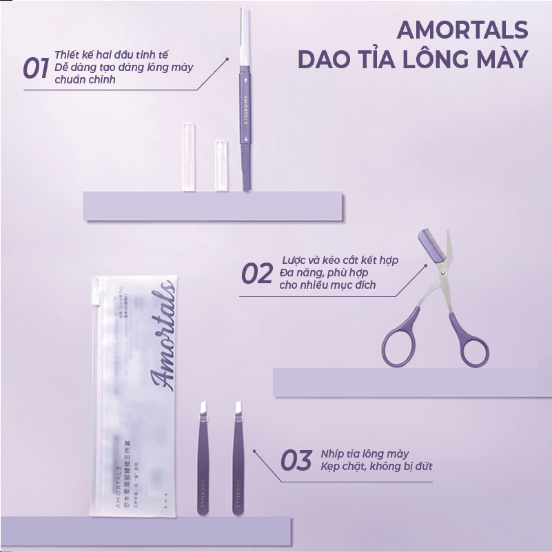 Bộ 2 Dao Cạo Lông Mày AMORTALS Hai Đầu Tiện Dụng Dao cạo lông mày tỉa lông mày cạo râu tiện lợi