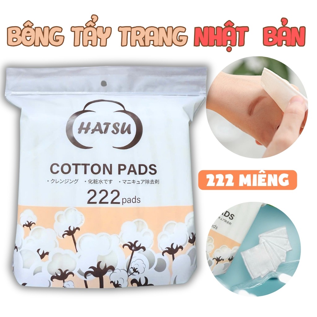 Bông Tẩy Trang 222 Miếng Hatsu, Bông Tẩy Trang 3 Lớp Natural Cotton Pad Chất Liệu Bông Tự Nhiên Không Gây Rát Da