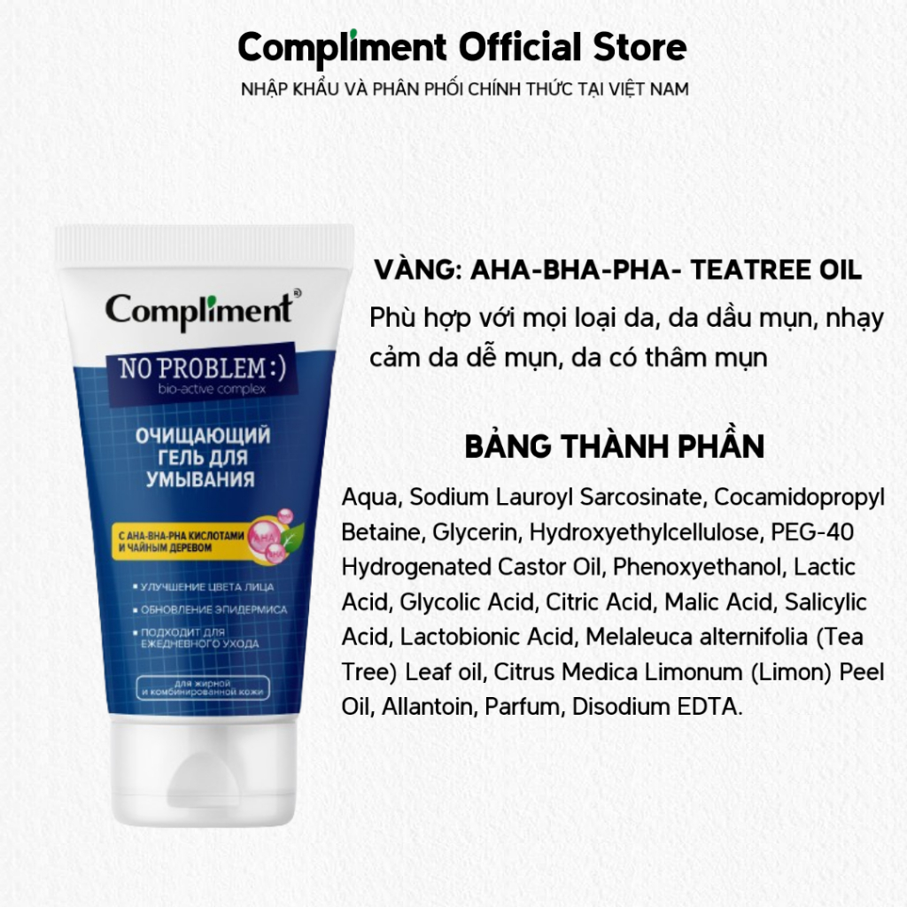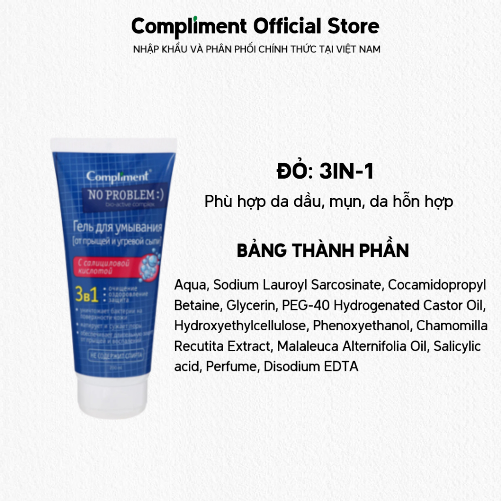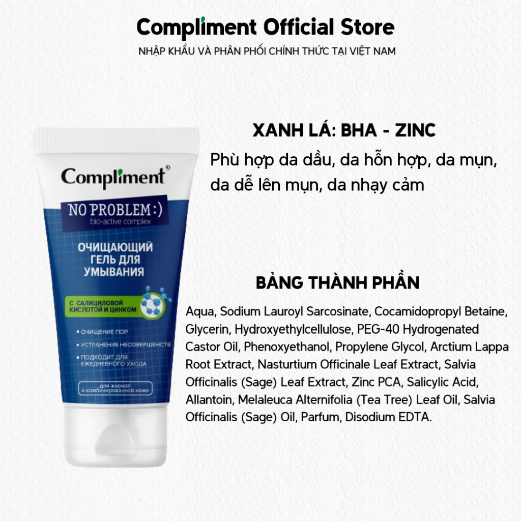Gel Rửa Mặt Chứa BHA Compliment No Problem Sạch Sâu, Giảm Dầu Mụn 200ml