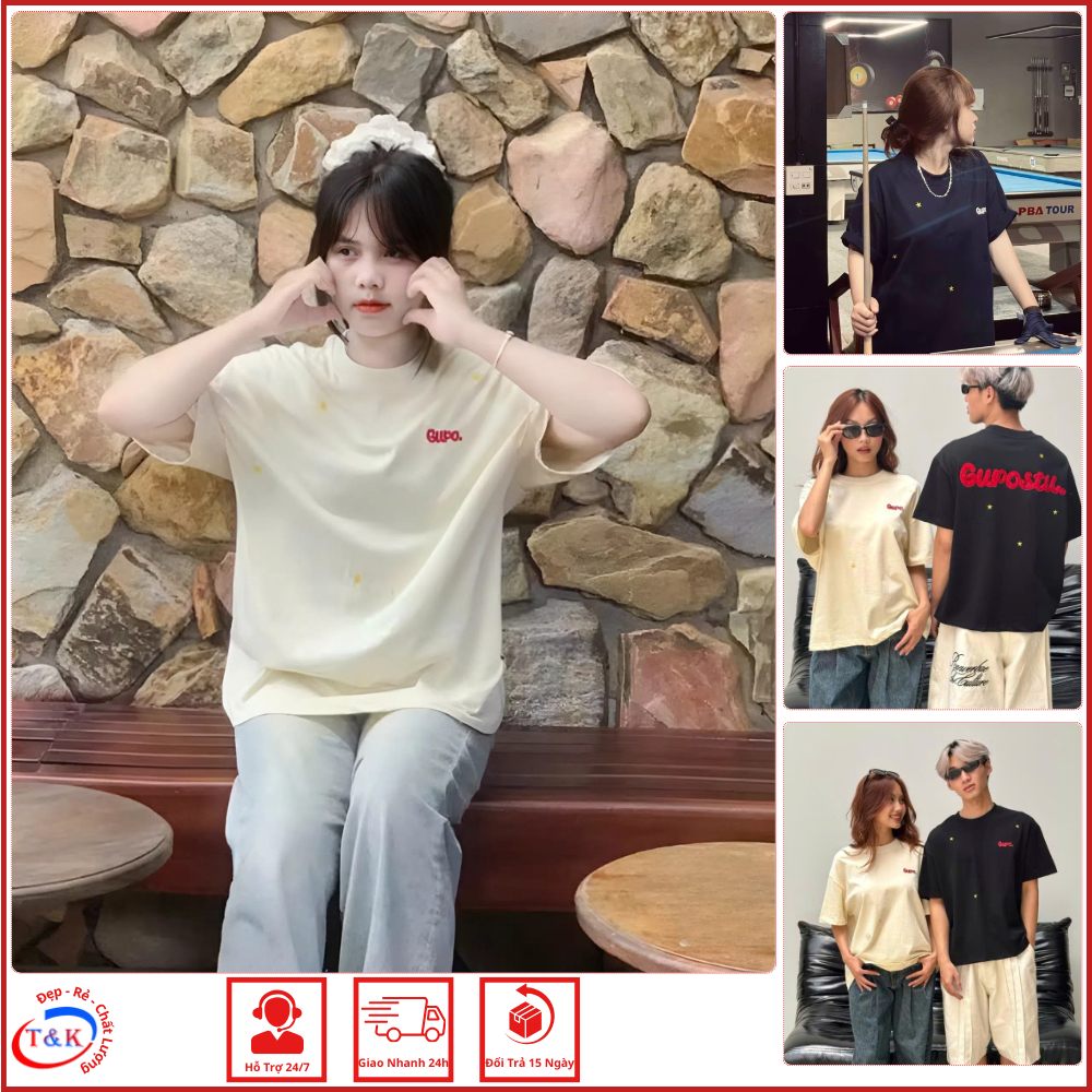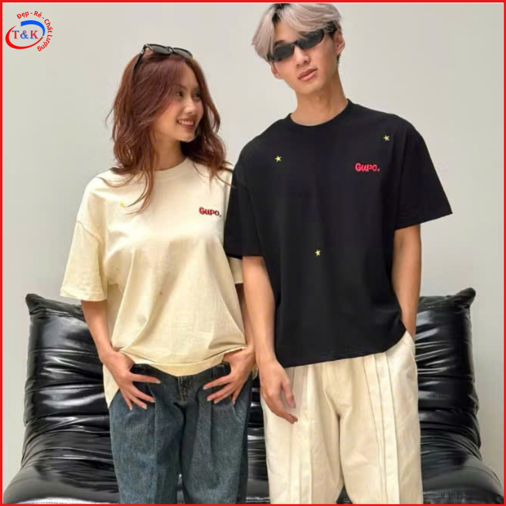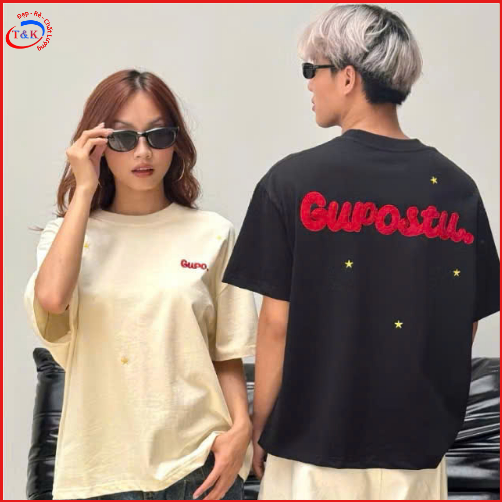 Áo thun unisex GUPO STAR form rộng - Áo thun T&K nam nữ tay lỡ cổ tròn cặp đôi dễ thương hài hước