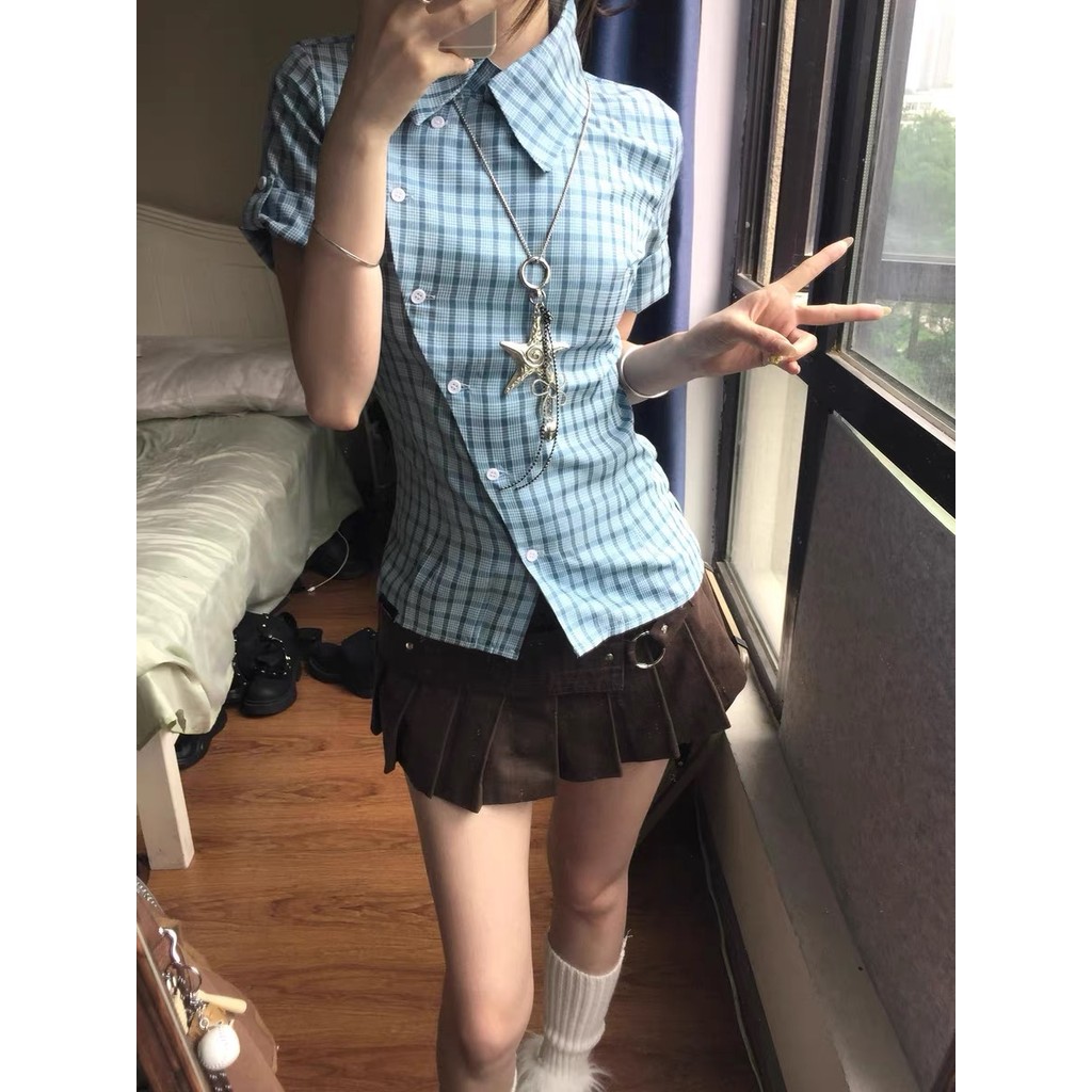 Kii Wii Áo sơ mi ngắn tay kẻ sọc màu tương phản - Mã 250813