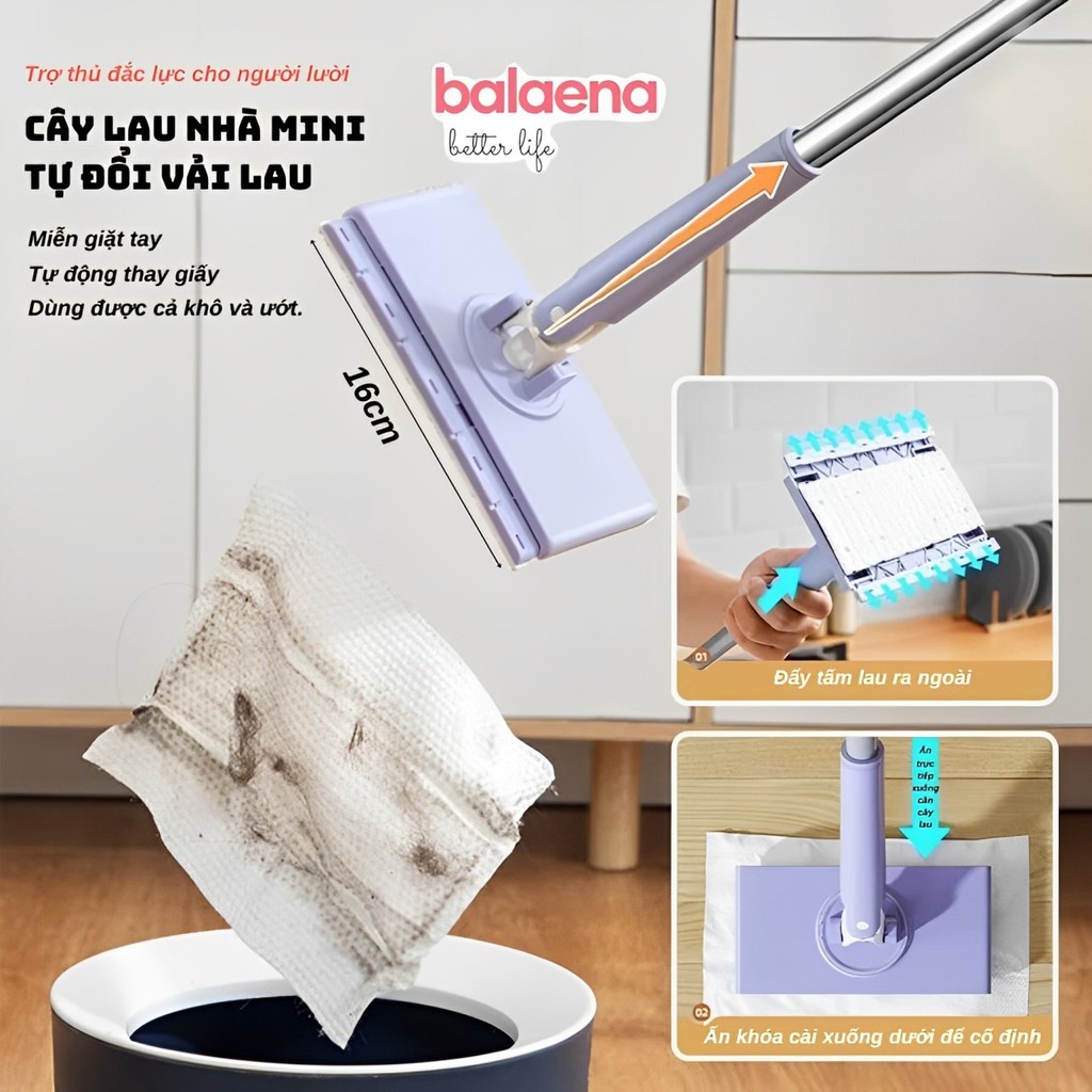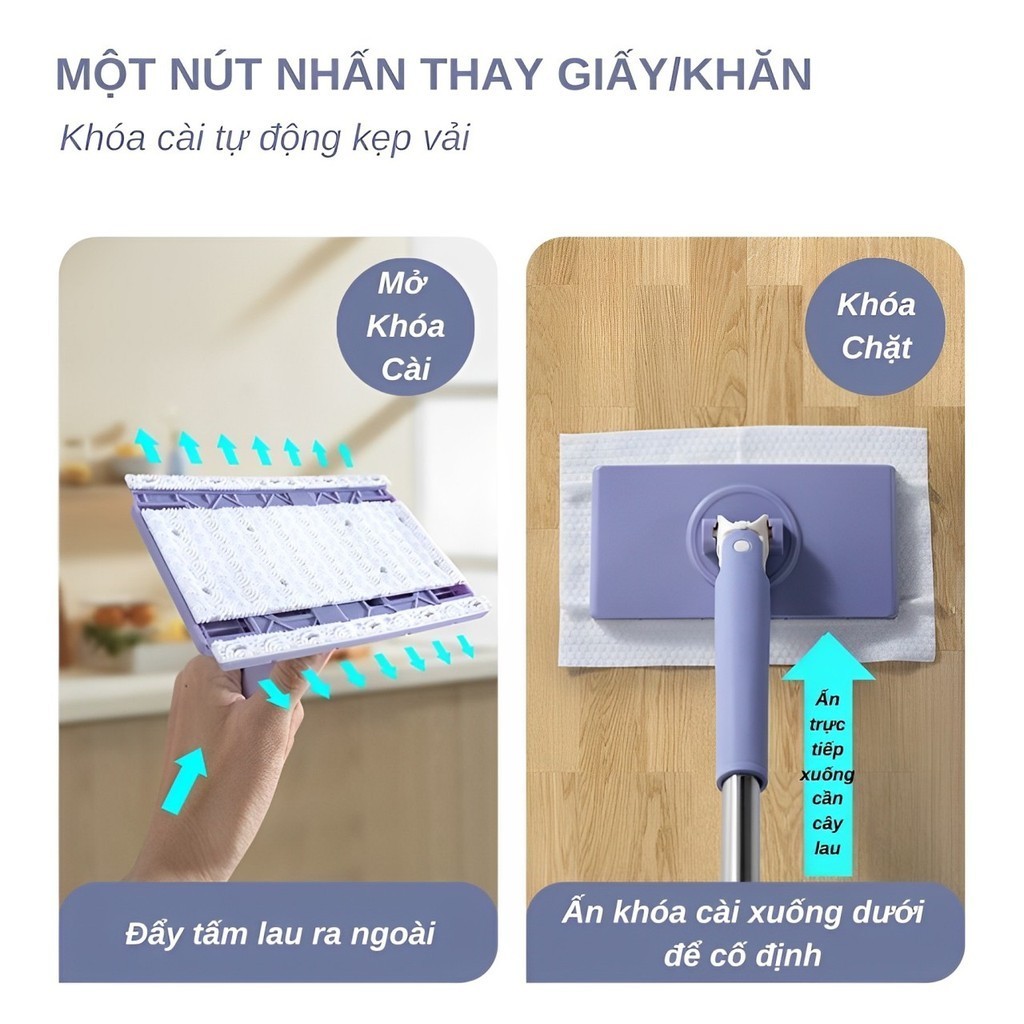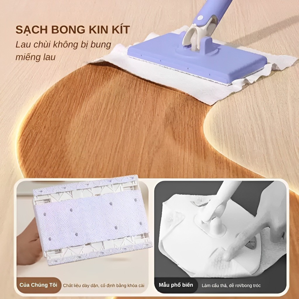 Cây Lau Nhà Kẹp Khăn Thông Minh 360 Độ - Cây Lau Nhà Mini Tự Gắp Giấy Dùng 1 Lần,Dụng cụ vệ sinh bồn cầu chổi vệ sinh