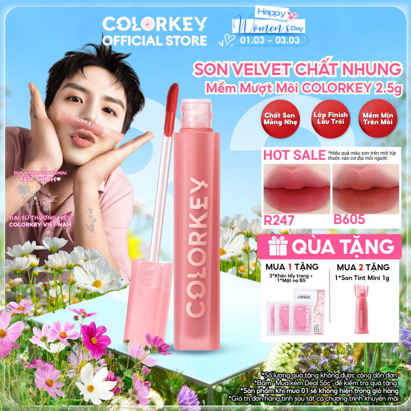 Son Velvet COLORKEY Chất Son Kem Nhung, Mịn Lì, Mềm Mượt Trên Môi 3g/2.5g