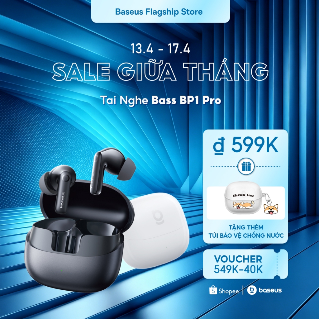 Tai nghe không dây Baseus BP1 Pro ANC -50dB Giảm tiếng ồn Hi-Res Bluetooth 6.0 IPX55 Chống nước 55Hr