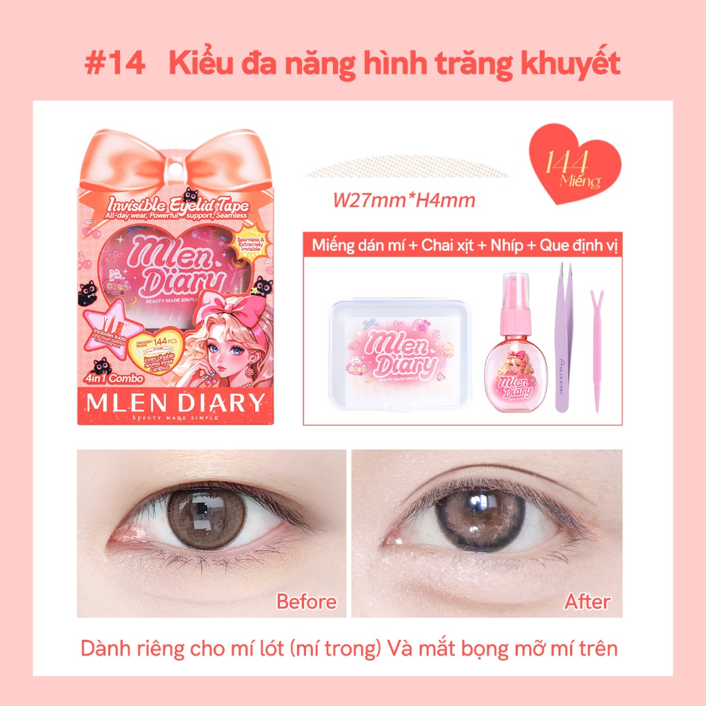 Mlen Diary Nhãn Dán Mí Mắt Dôi Vô Hình Tự Nhiên, Thích Hợp Cho Người Mới Biết, Kiểu Dáng Mới Cho Nhiều Hình Dạng Mắt Khác Nhau
