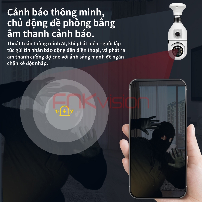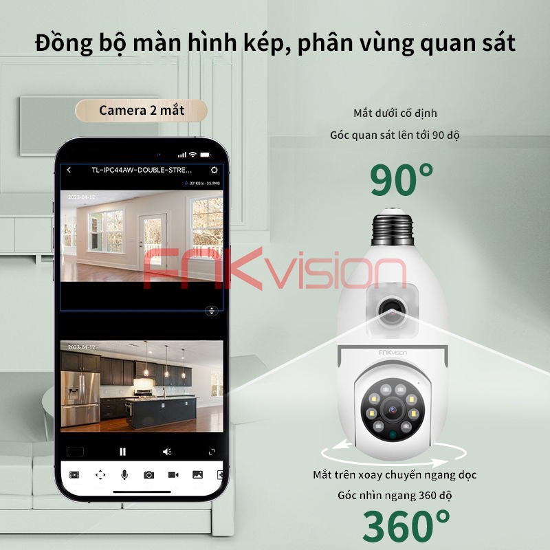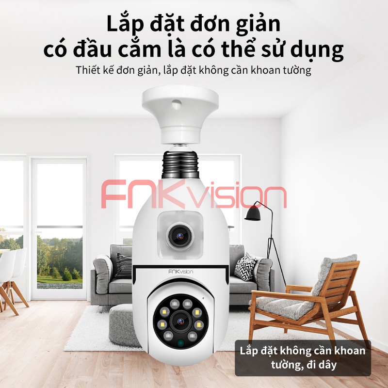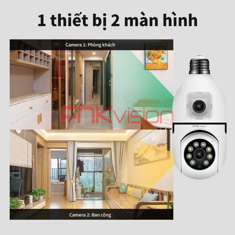 【Fnkvision】Camera Yoosee 2 mắt kết nối bằng đui đèn E27 U20T 12 MP ,xem đồng thời 2 giao diện - bảo hành 1 năm