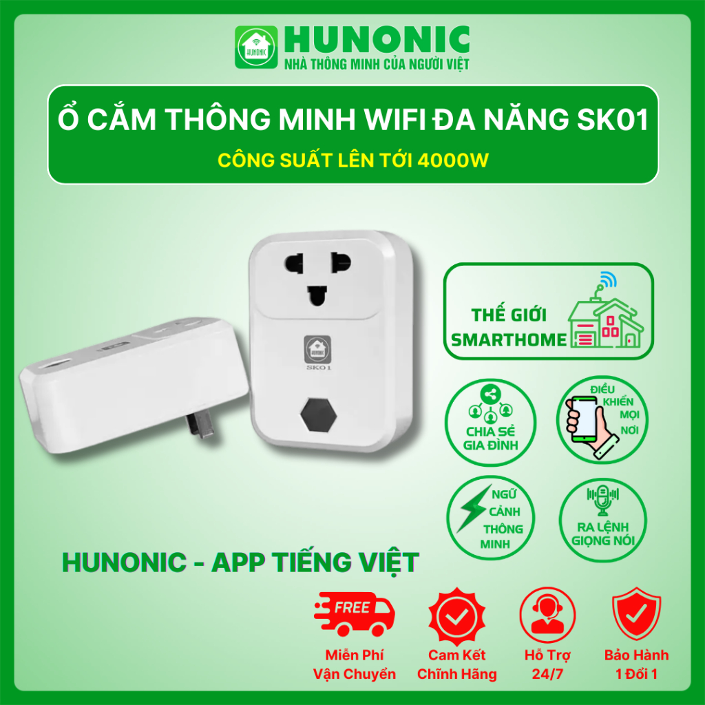 Ổ Cắm Đa Năng Thông Minh WiFi Hunonic SK01 – Điều Khiển Từ Xa Qua Điện Thoại