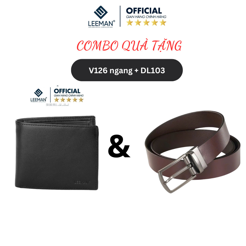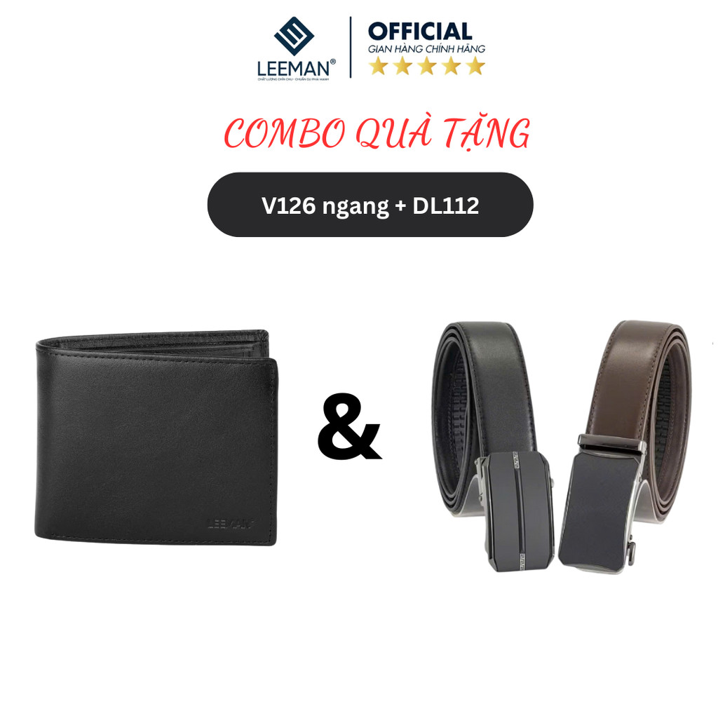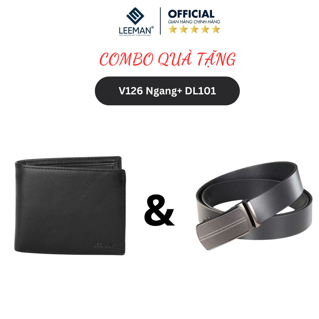 Combo Ví Thắt Lưng Nam Fullbox Chính Hãng LEEMAN V126 Phom Ngang Làm Quà Tặng Bố, Tặng Người Yêu