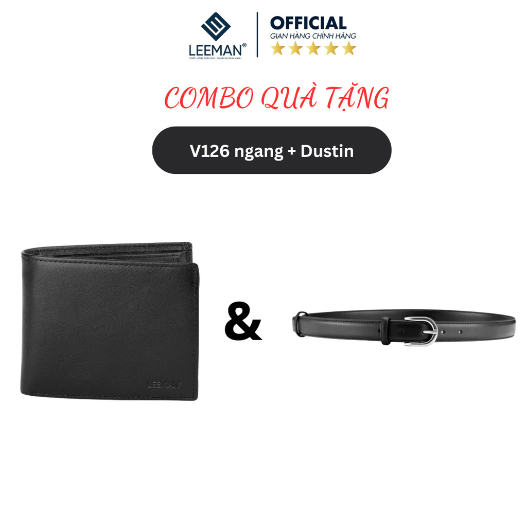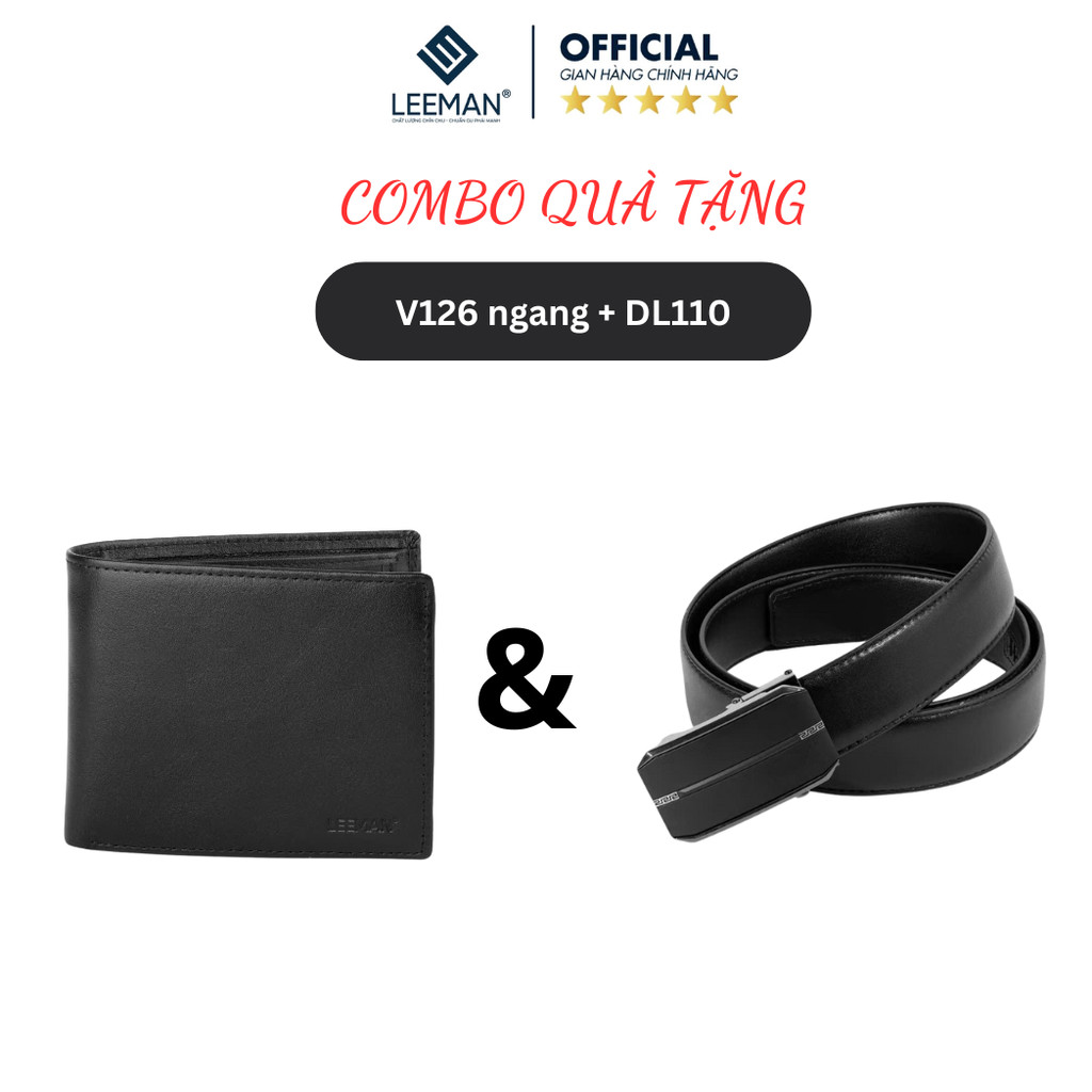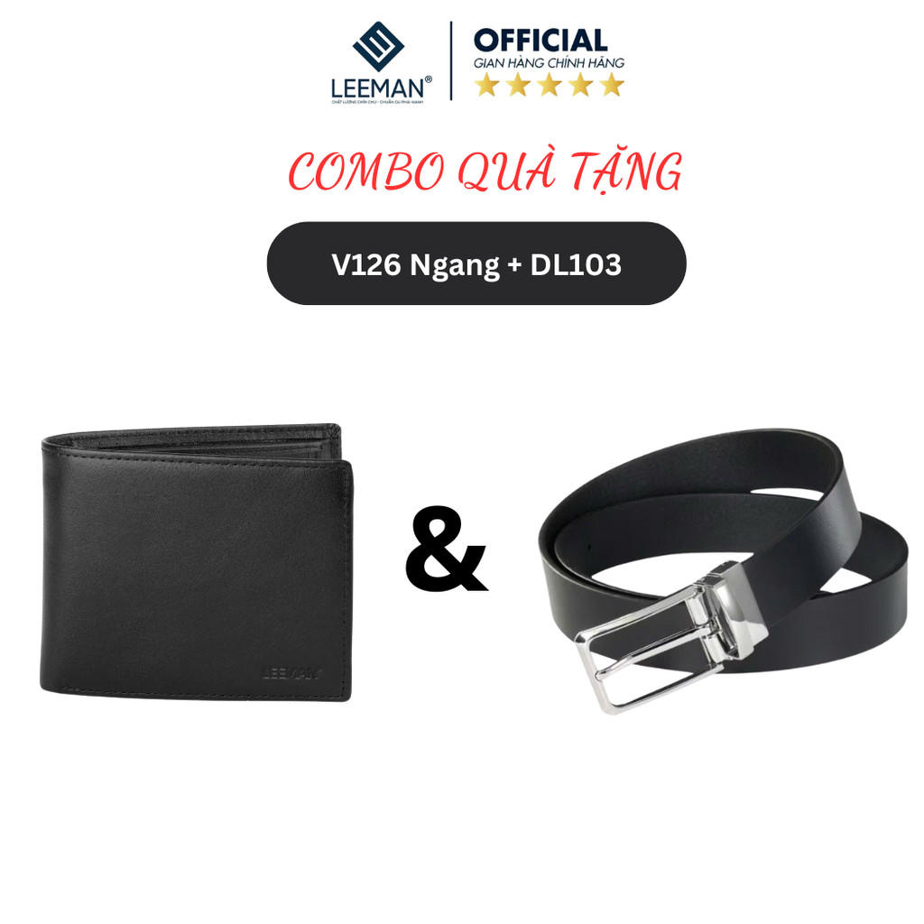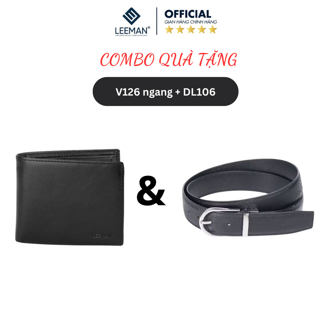 Combo Ví Thắt Lưng Nam Fullbox Chính Hãng LEEMAN V126 Phom Ngang Làm Quà Tặng Bố, Tặng Người Yêu