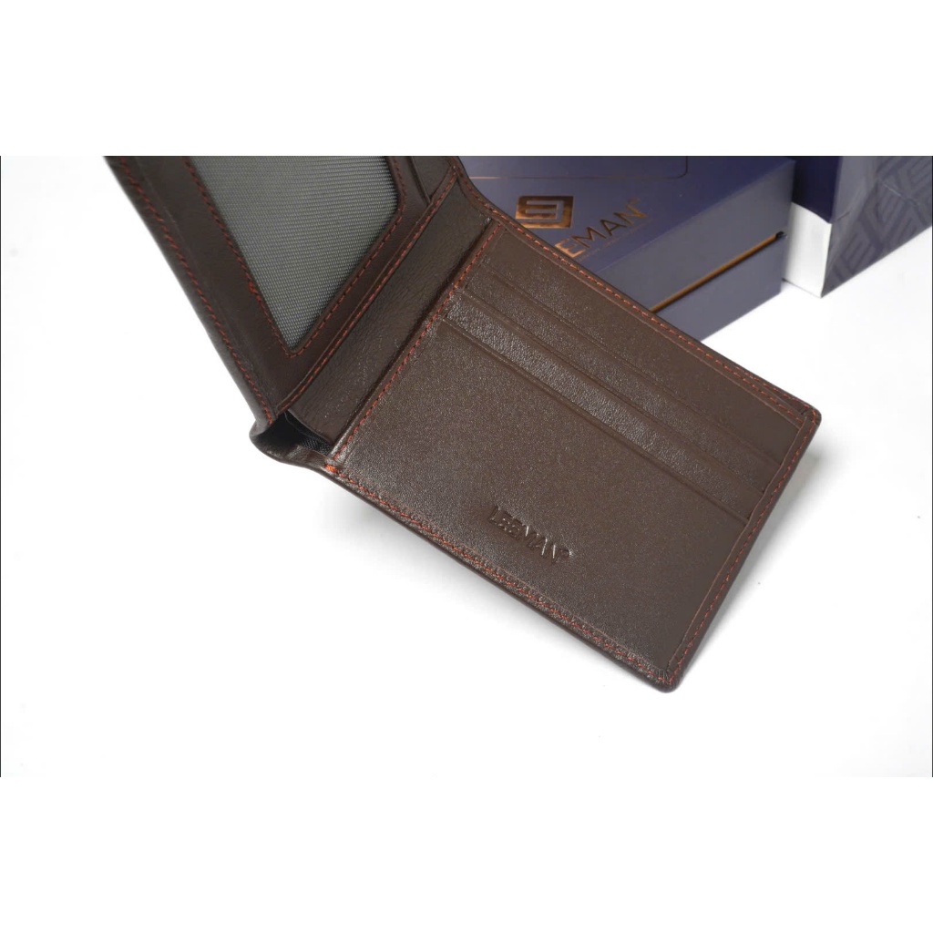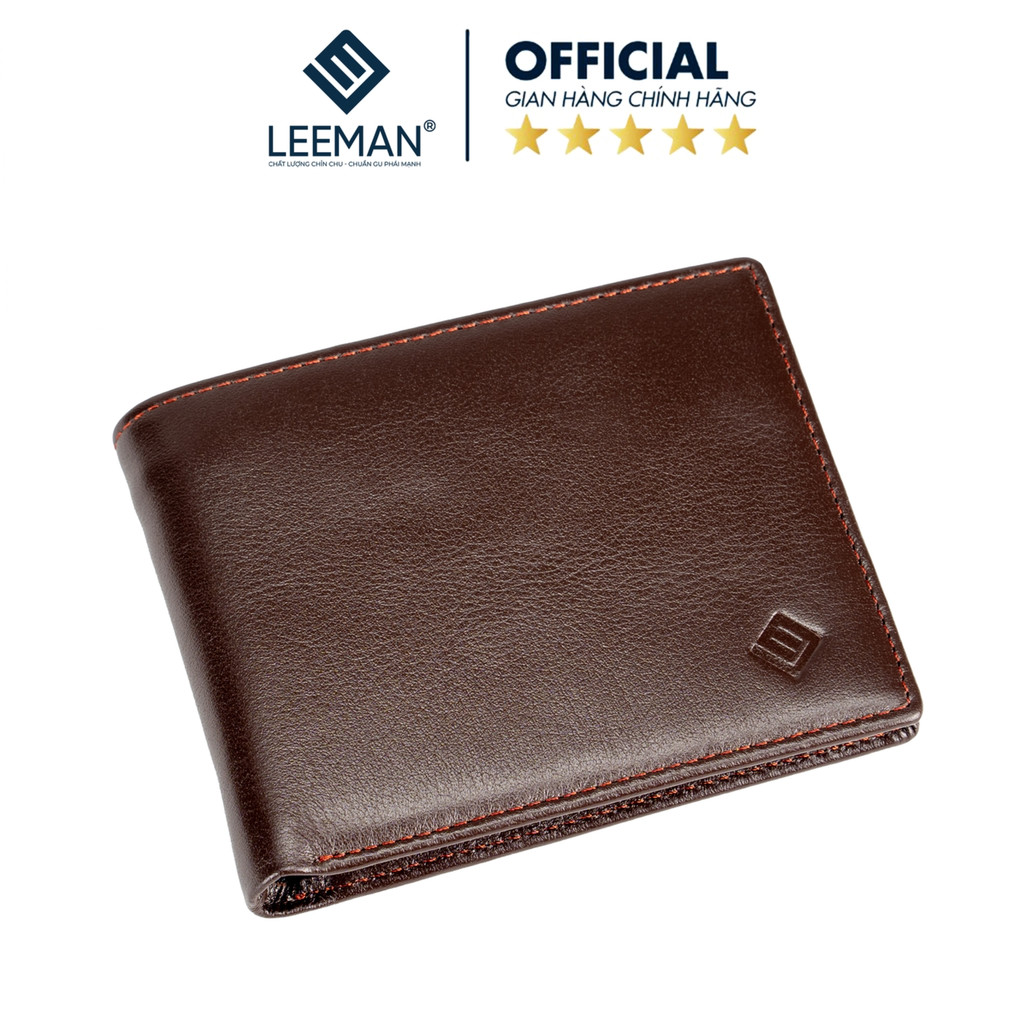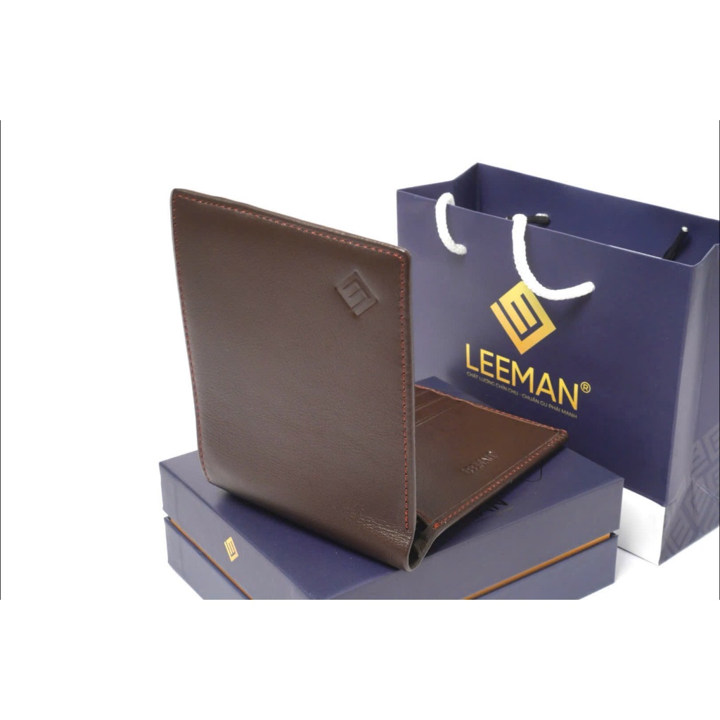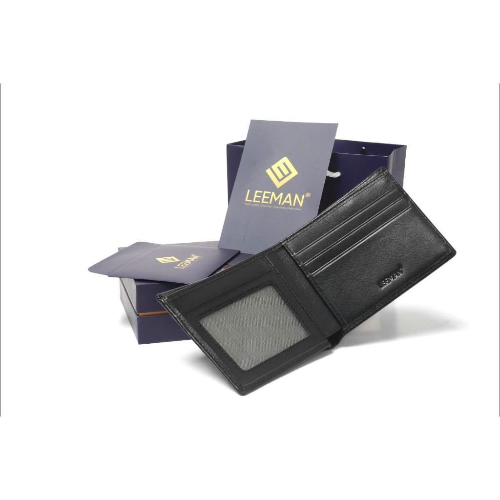 [ CÓ KHẮC TÊN ] Ví Nam Thiết Kế Nam Tính Da Bò Nappa Chính Hãng LEEMAN V127 Bóp Nam Da Thật Full Hộp Làm Quà Tặng