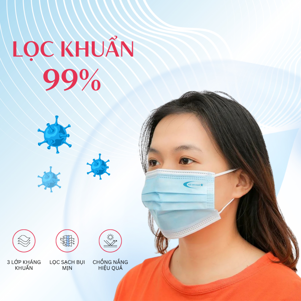 [ Thùng 300 Chiếc (6 Hộp) ] Khẩu Trang Y Tế 4 Lớp HẢI AN MASK, Kháng Khuẩn Dày Dặn, Chống Bụi Mịn & Tia UV