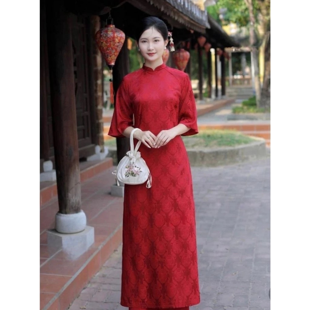 Set Áo dài cách tân suông Thọ Rơi, chất gấm tơ tằm mềm rủ sang xịn cho nàng chụp ảnh, dự sự kiện, lễ tết, cưới hỏi