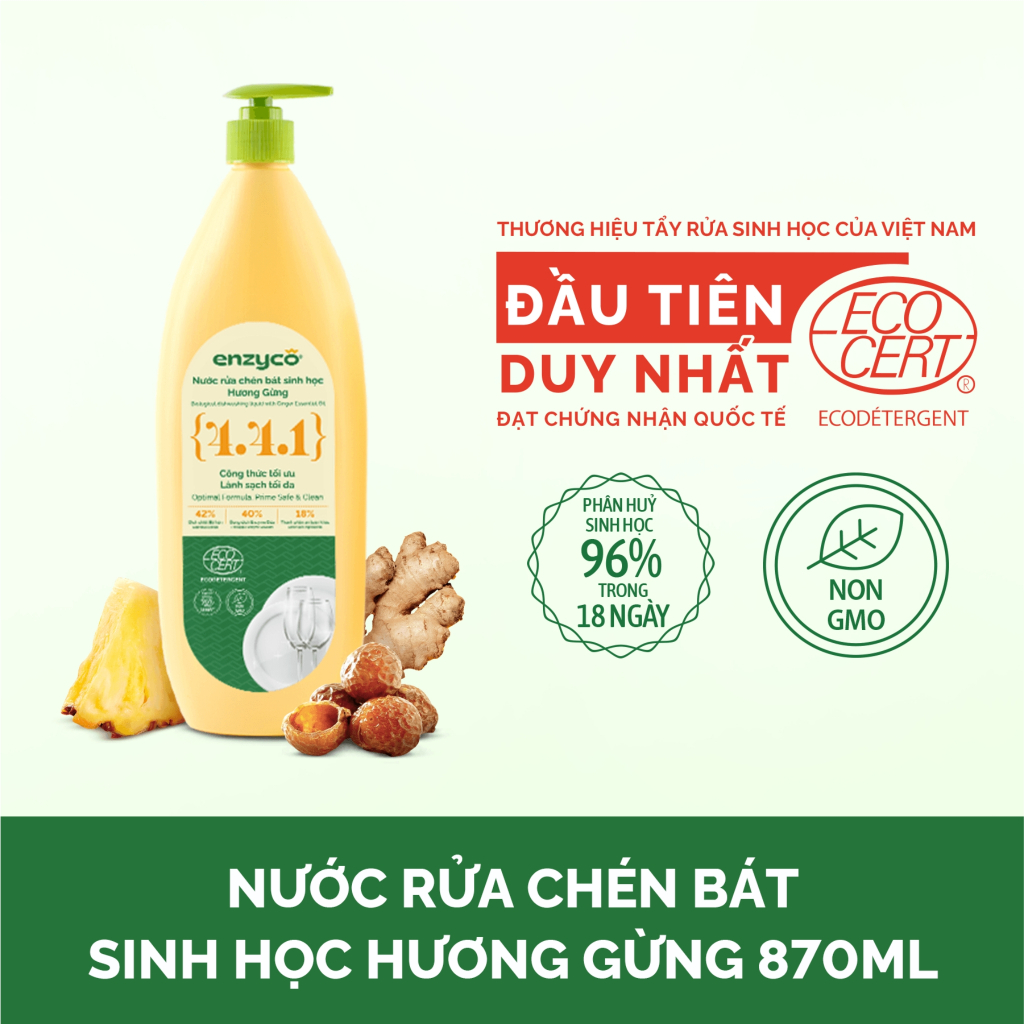 Nước Rửa Chén Gừng Sinh Học ENZYCO 870ML Từ Bồ Hòn & Dứa,Sạch Dầu Mỡ,Không Khô Da Tay,Đạt Chứng NhậnECODETERGENT-ECOCERT