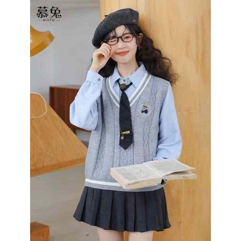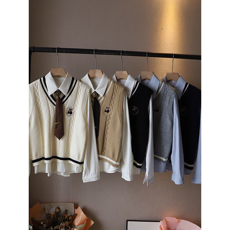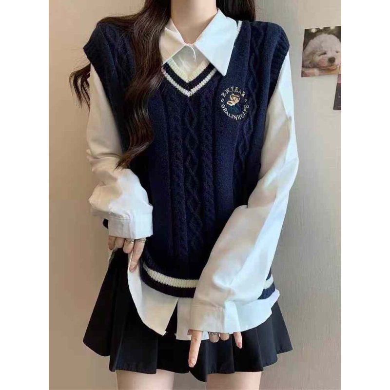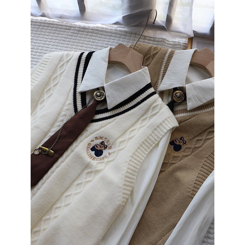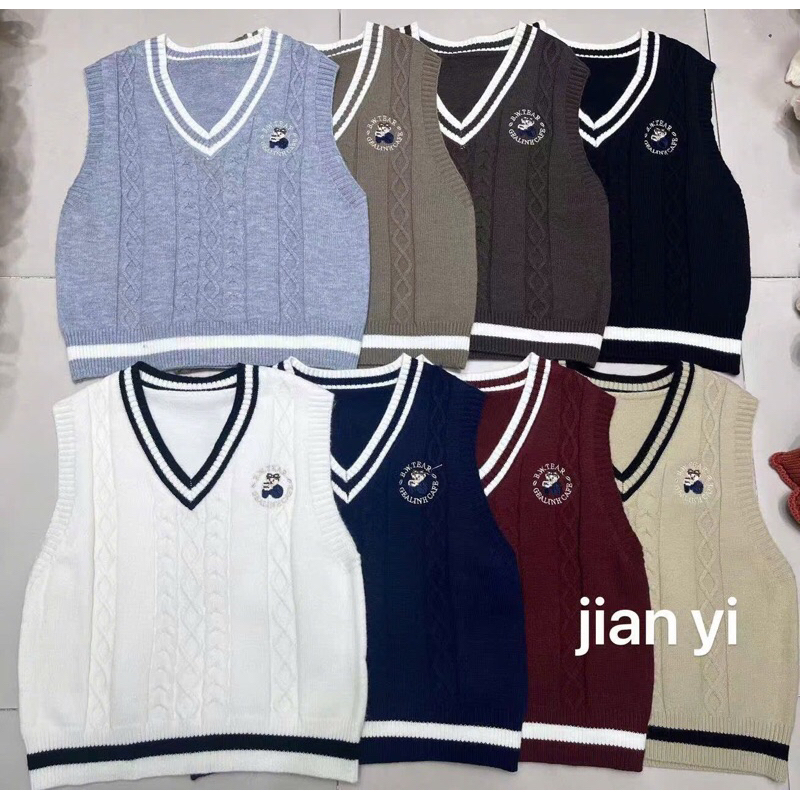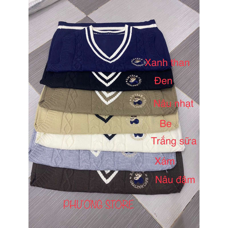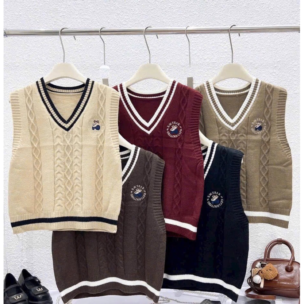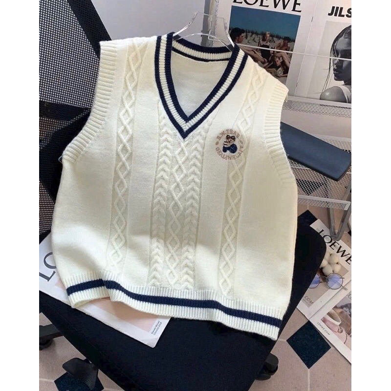 Áo Gile len nữ VIỀN KẺ THÊU GẤU chất dày dặn hàng QC.
