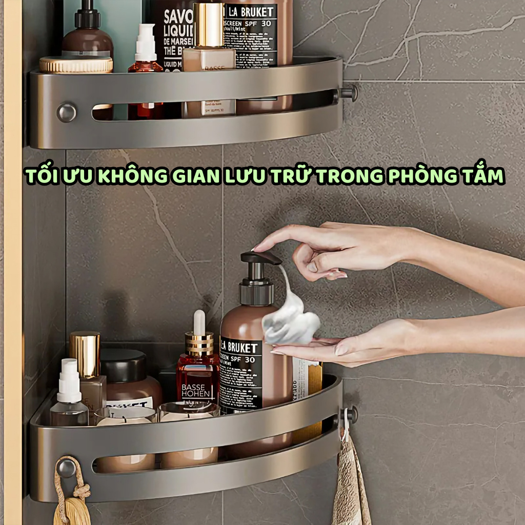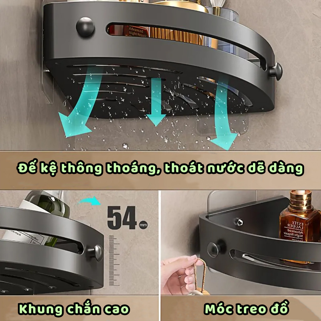 Giá góc treo tường phòng tắm, giá góc phòng tắm đa năng, chống gỉ, thép cường độ cao, thiết kế không đục lỗ