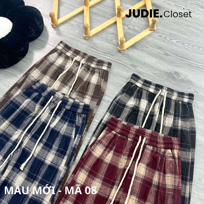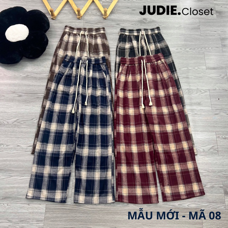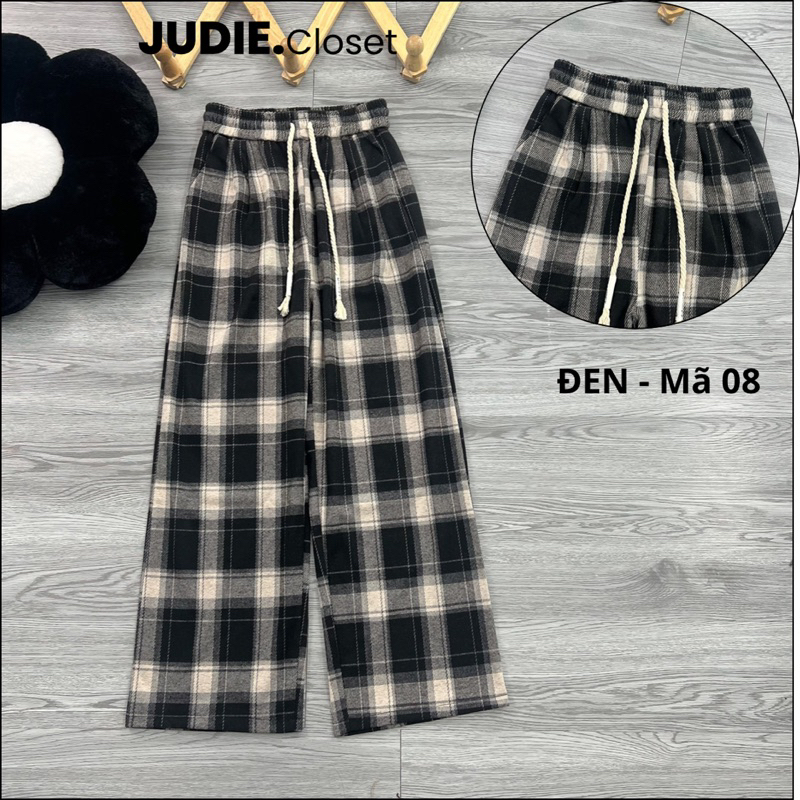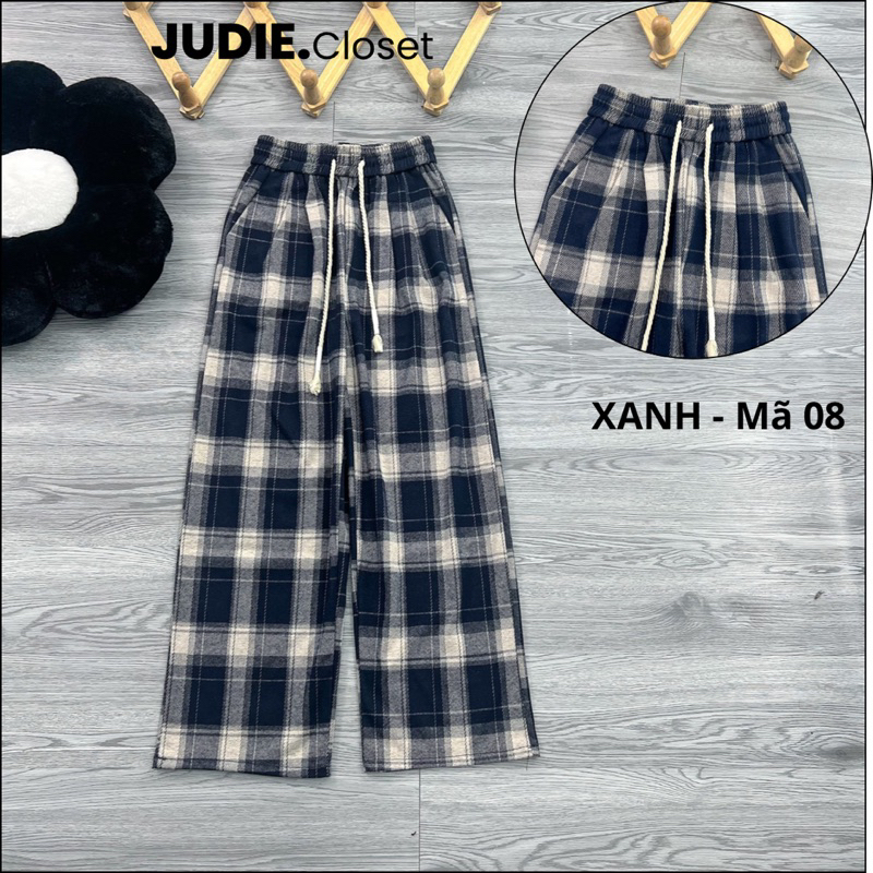 Quần Suông Ống Rộng Nữ Kẻ Caro Chất Dạ umi cao cấp,Quần Ống Suông Nữ Mùa Đông Hàng QCCC JUDIE.Closet