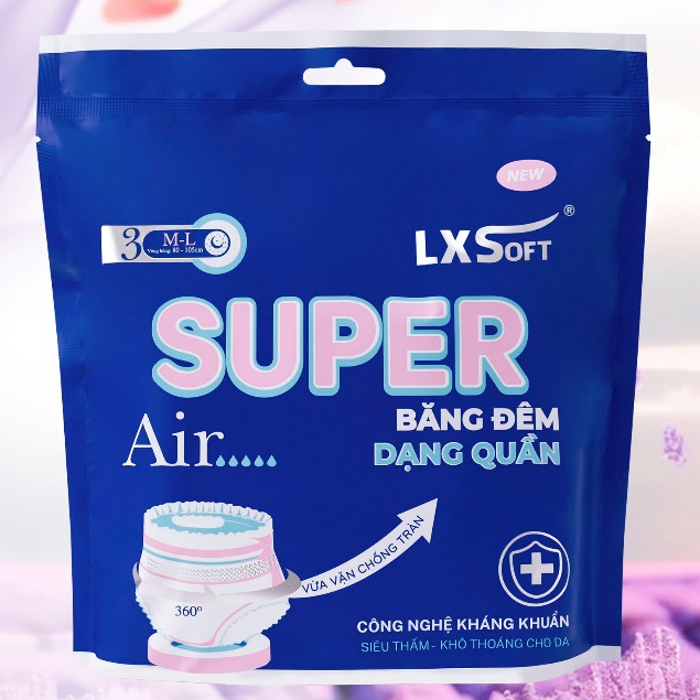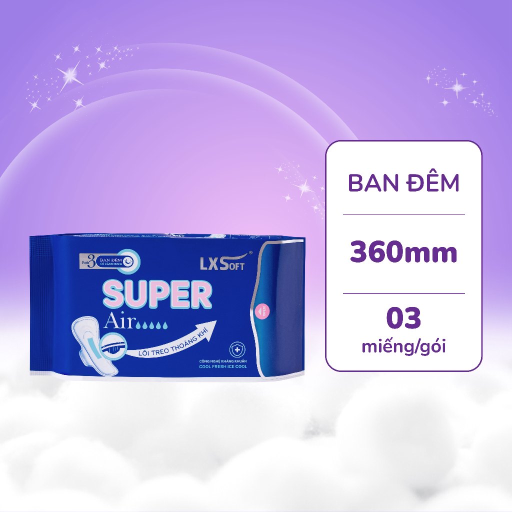 Băng vệ sinh Super Air LXSoft - Bề mặt LƯỚI LỤA siêu thấm hút - Ban ngày - Ban đêm - Hàng ngày
