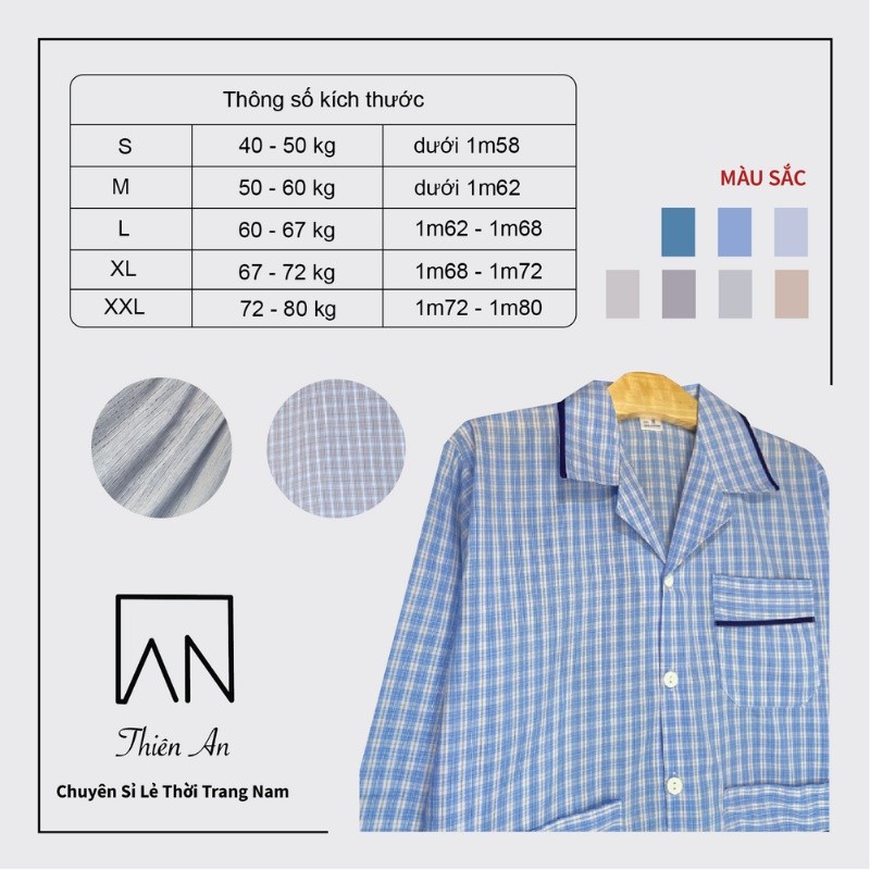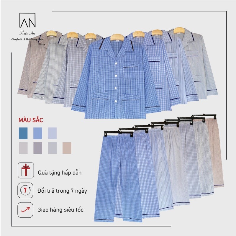 Đồ Bộ Nam Pijama dài tay Cao Cấp Nắng hidro Thích Hợp Với Nam Trung Niên Chất Liệu Vải Cotton Thoáng Mát