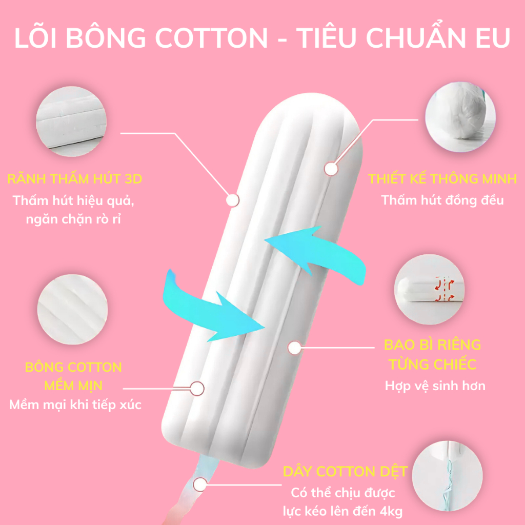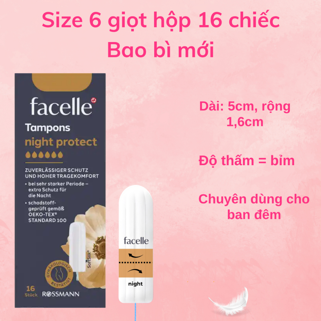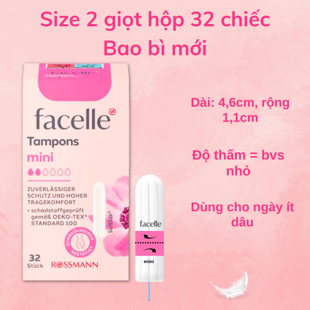 Tampon Facelle đủ size nhập khẩu Đức thấm hút tốt, đi bơi, đi biển - Băng vệ sinh dạng nút facelle