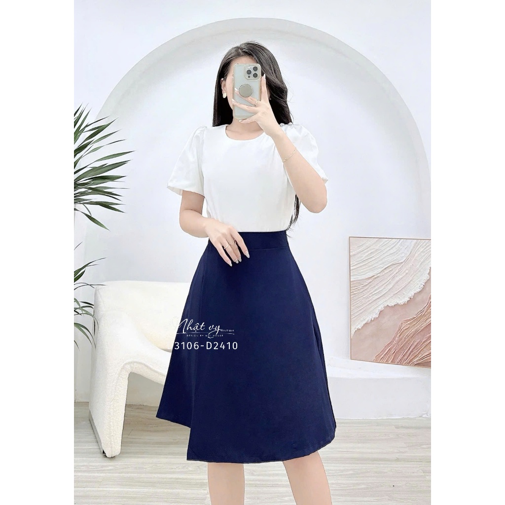 Chân váy chữ A công sở Nhật Vy tà đắp chéo chất lụa phù hợp đi chơi dạo phố - D3106