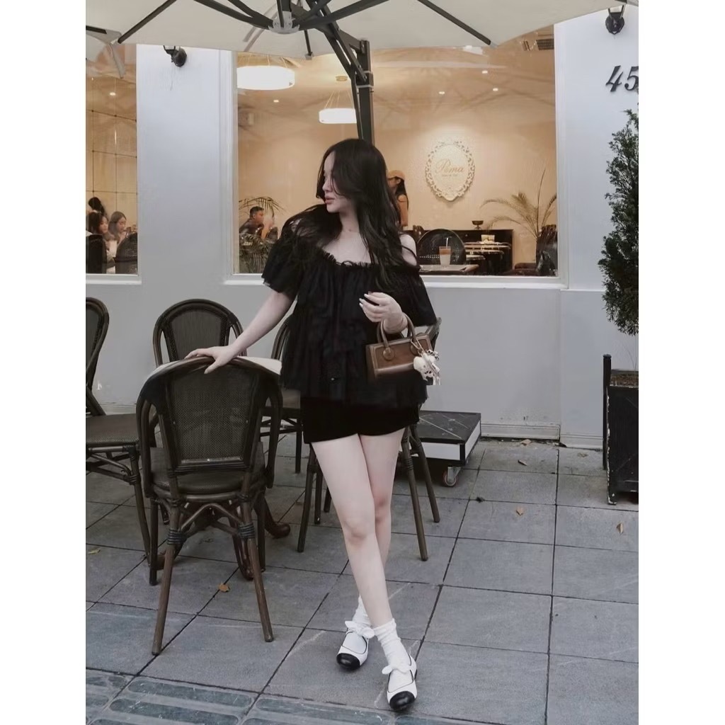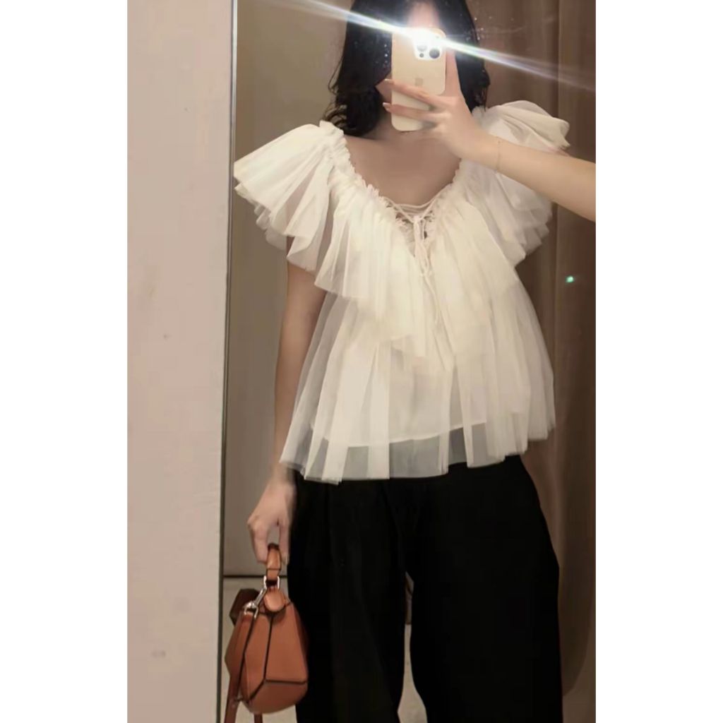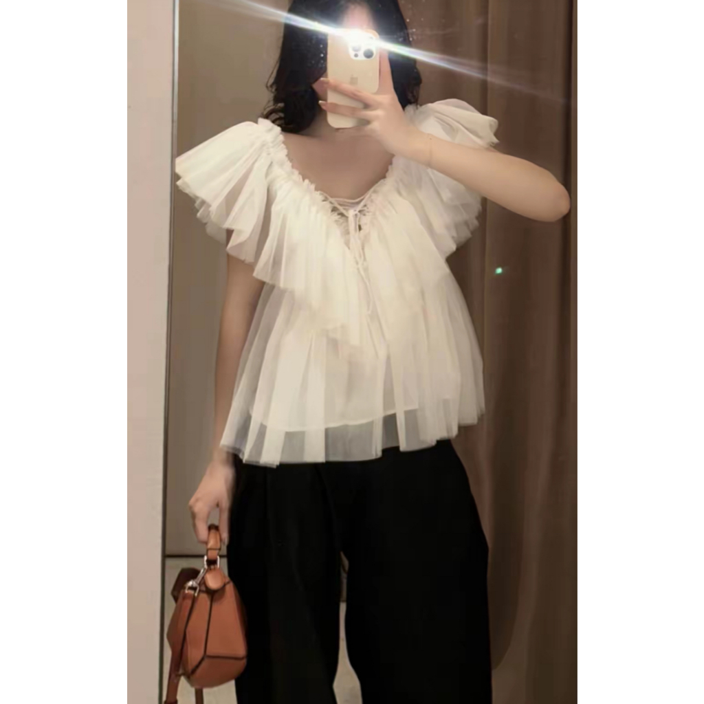 [HÀNG QC/ LOẠI 1] ÁO KIỂU NỮ CỔ V BÈO TẦNG VOAN LƯỚI BỒNG XOÈ 2MONDAY A84