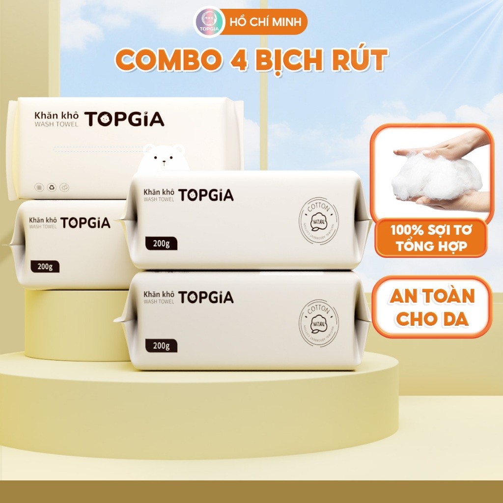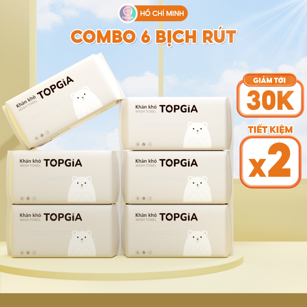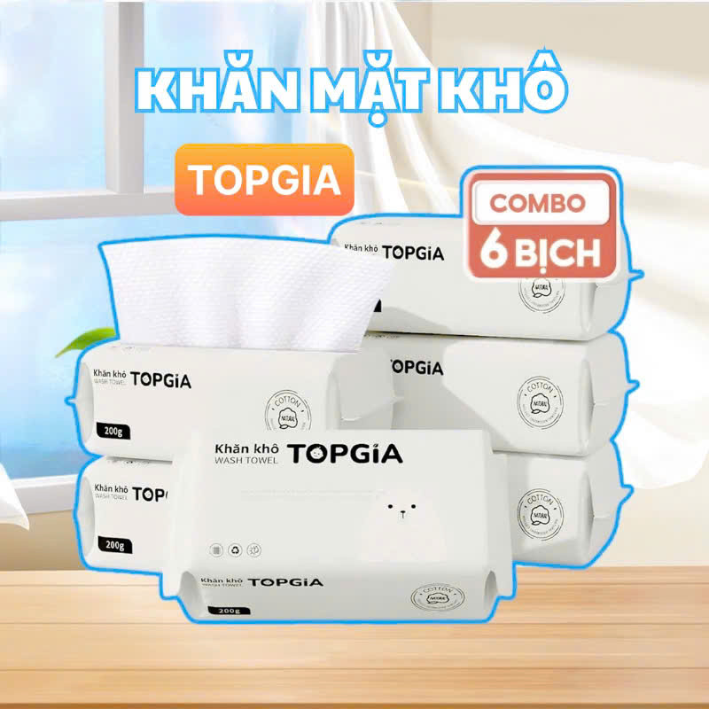 Khăn khô đa năng Top Gia cao cấp, combo 6 bịch dùng 1 lần siêu dai, siêu mềm mịn - TOPGIA