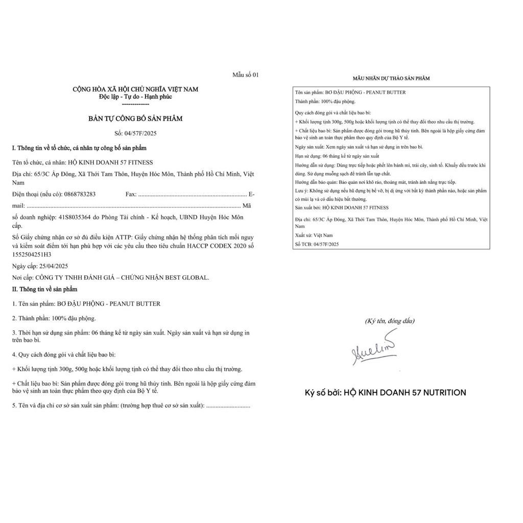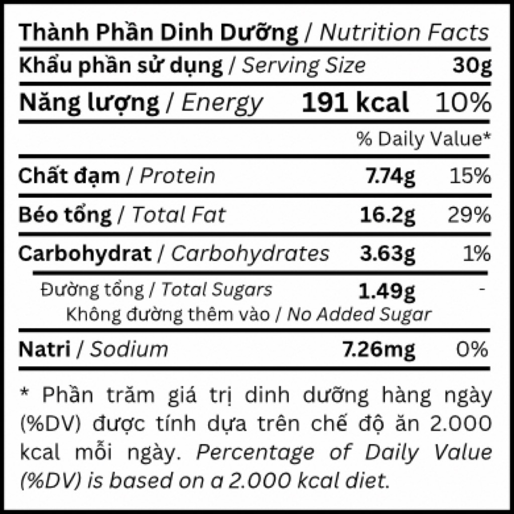 Bơ Đậu Phộng 100% Peanut Butter 57 Nutrition